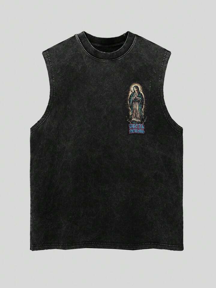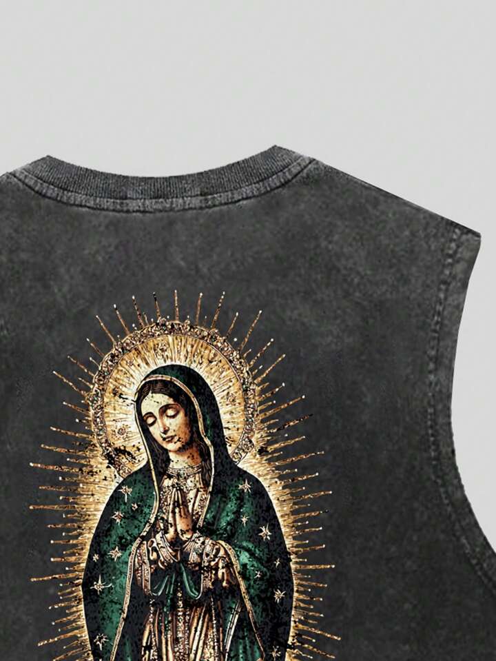 Goth Men's Casual Retro Virgin Mary Print Round Neck Tank Top