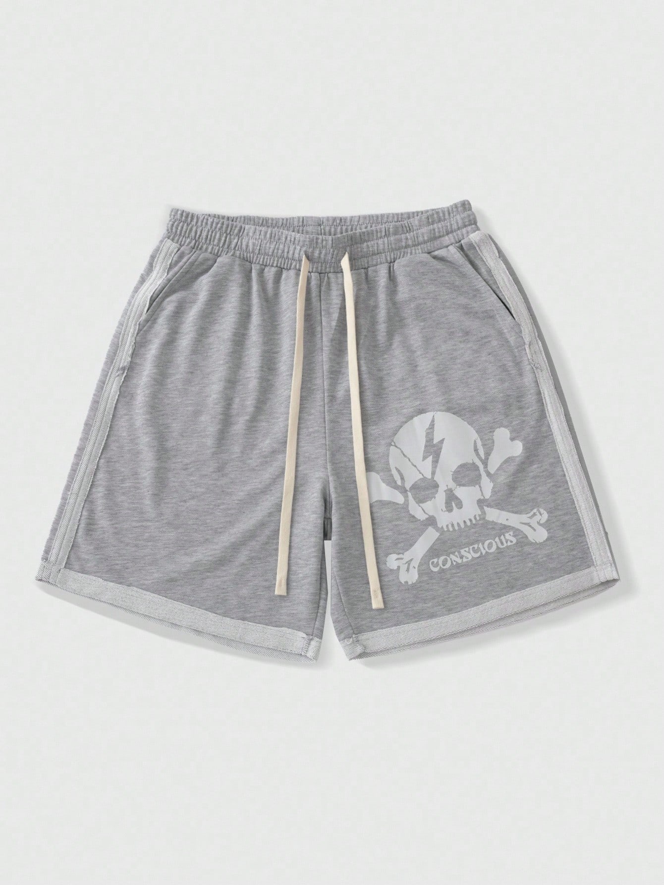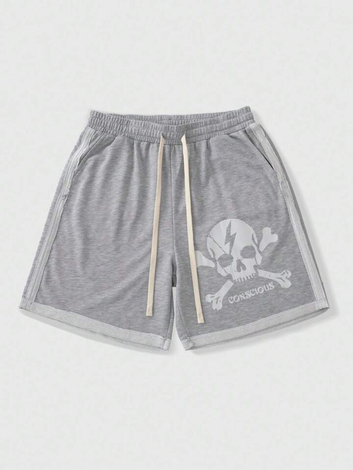 Goth Men's Casual Skull Print Loose Shorts, Summer