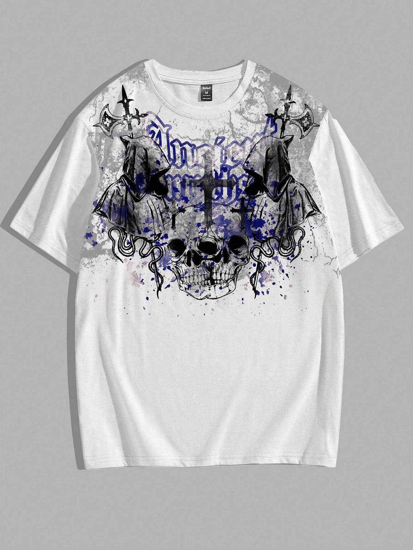 Goth Men's Casual Skull Print Round Neck Short Sleeve T-Shirt