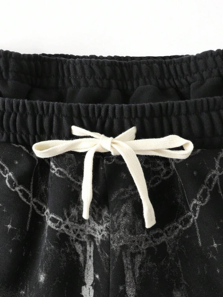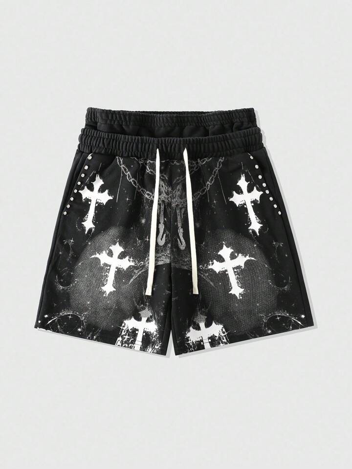 Goth Men's Cross Print Casual Double Waistband Loose Shorts