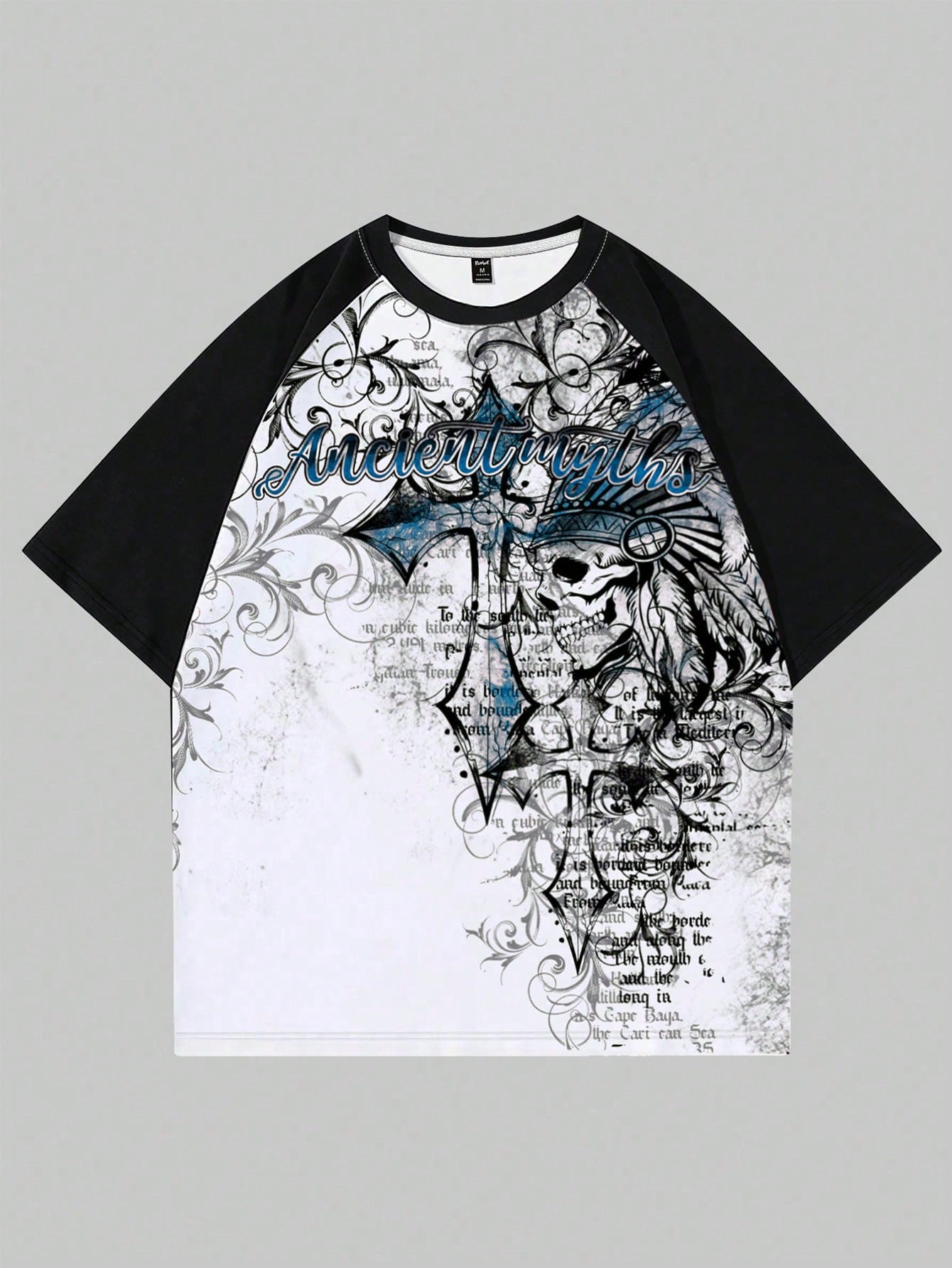Goth Men's Cross & Skull Print Colorblock Round Neck Short Sleeve T-Shirt