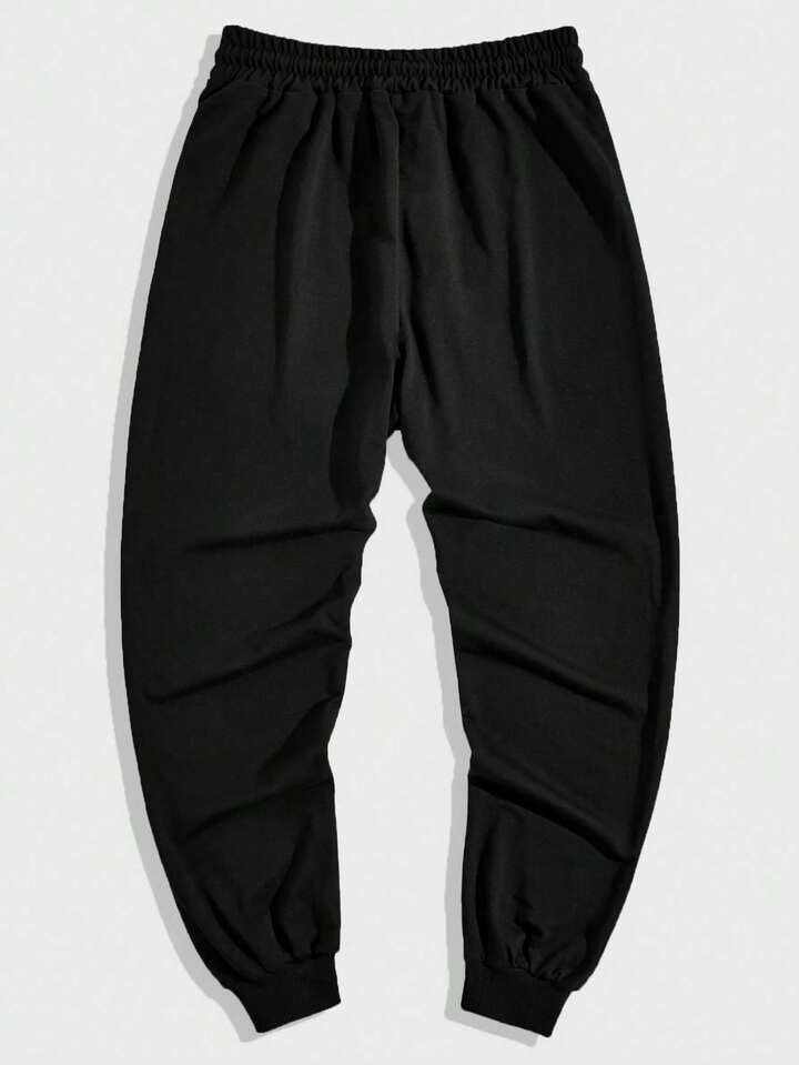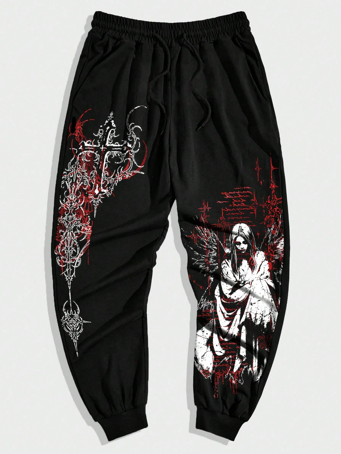 Goth Men's Drawstring Waist Cross Print Tapered Leg Sweatpants, Dark Style