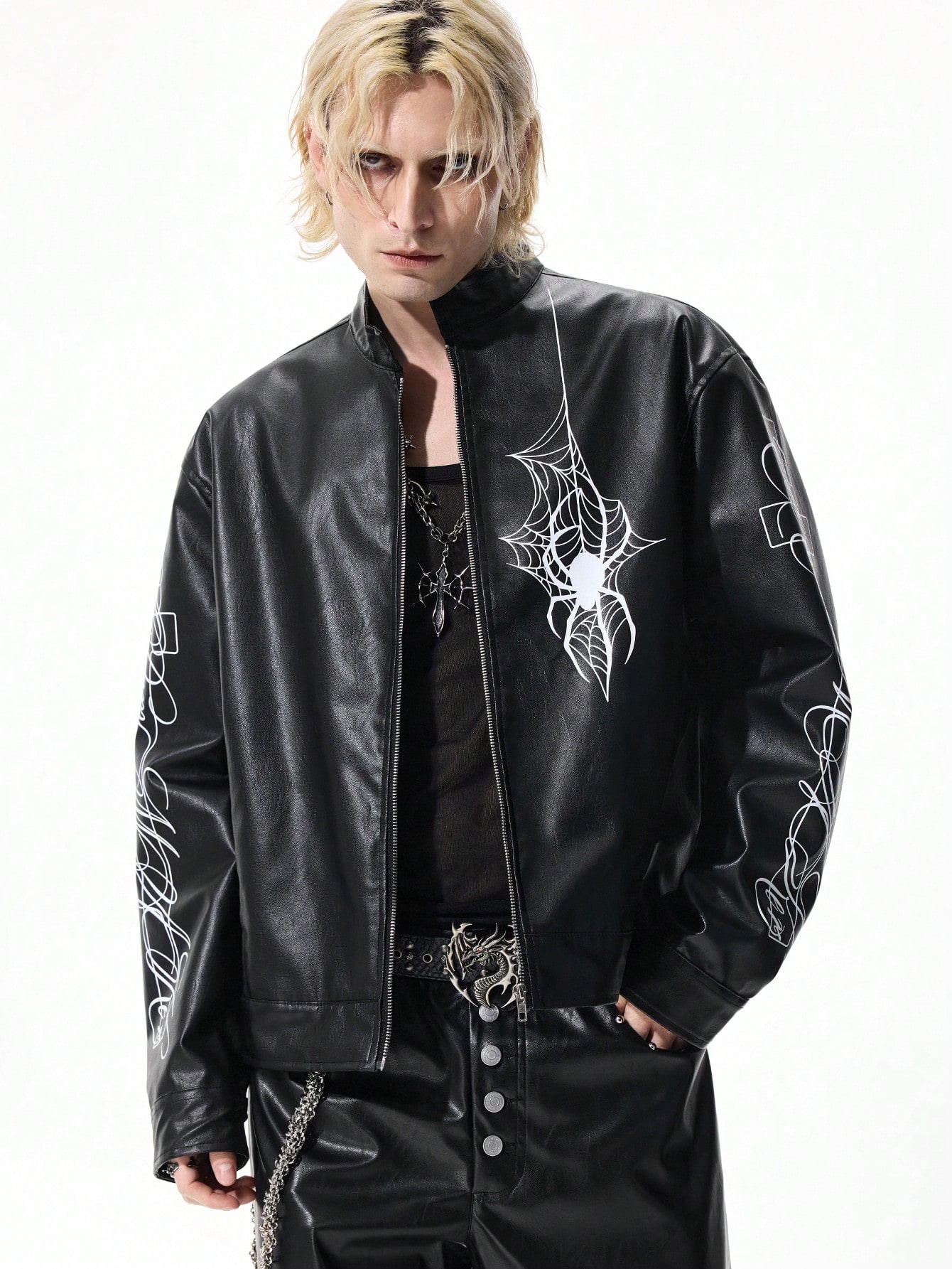 Goth Men's Fashion Spider Web & Letter Print Jacket