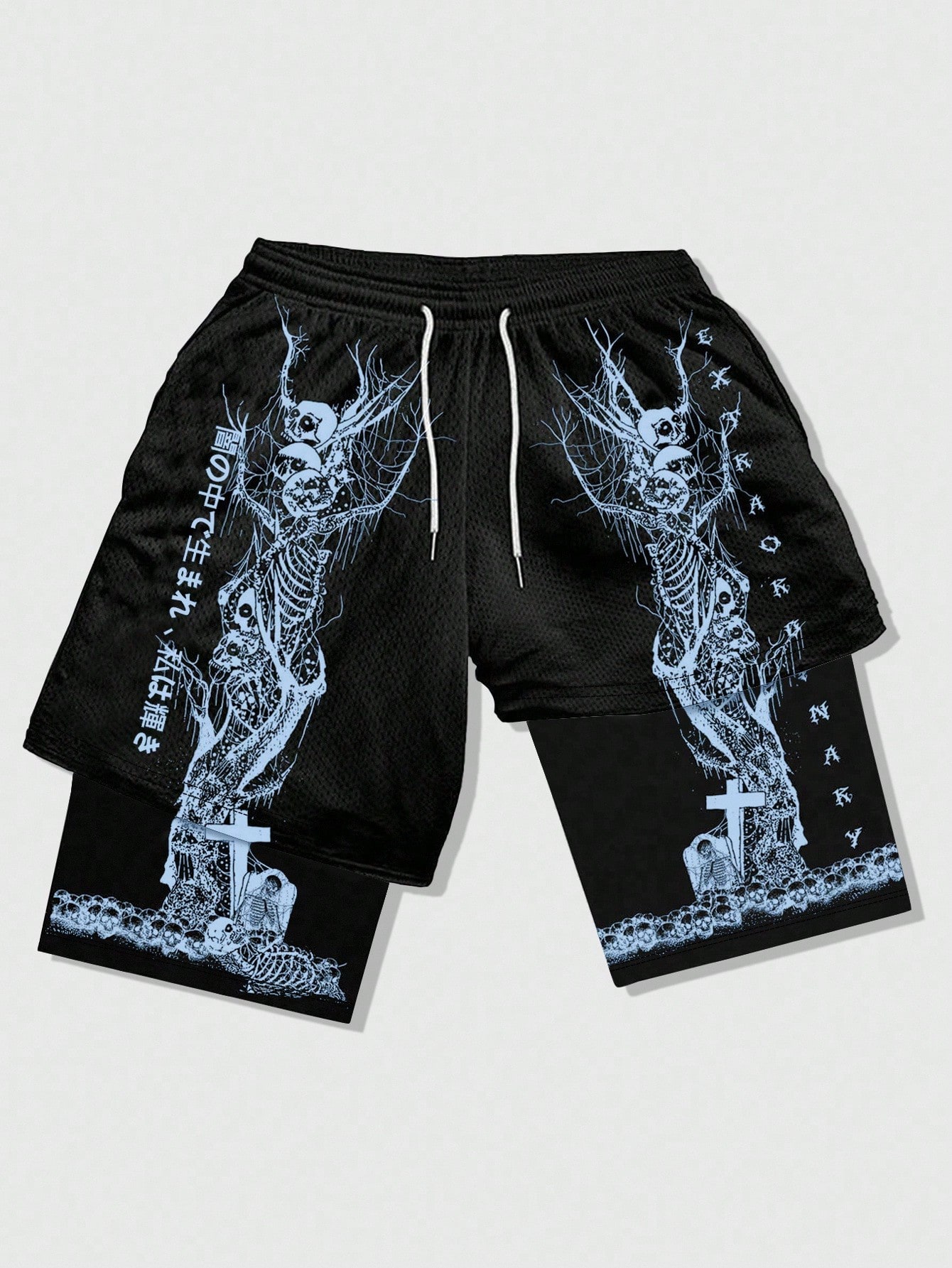 Men's Gothic Print 2 In 1 Sports Shorts, Suitable For Everyday Wear, Spring/Summer, Halloween