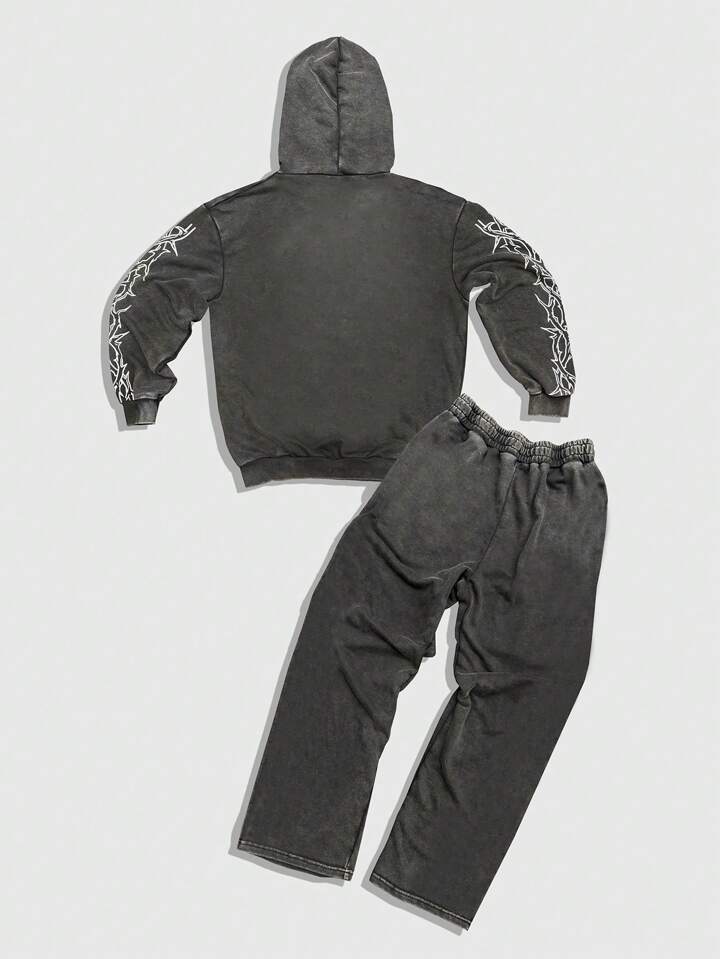 Goth Men's Graphic Print Casual Hooded Sweatshirt And Pants Set, Long Sleeve