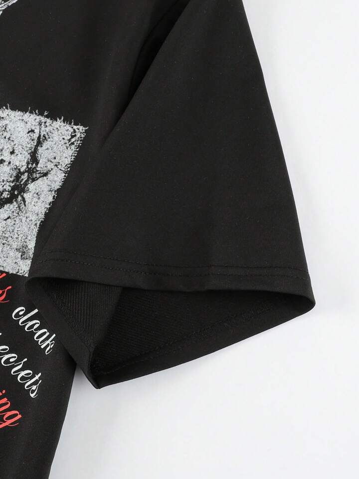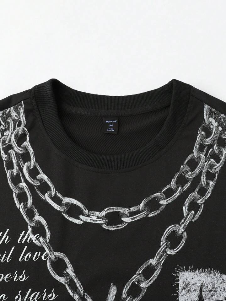 Goth Men's Grunge Chain Pattern Heavyweight Loose Short Style Printed T-Shirt