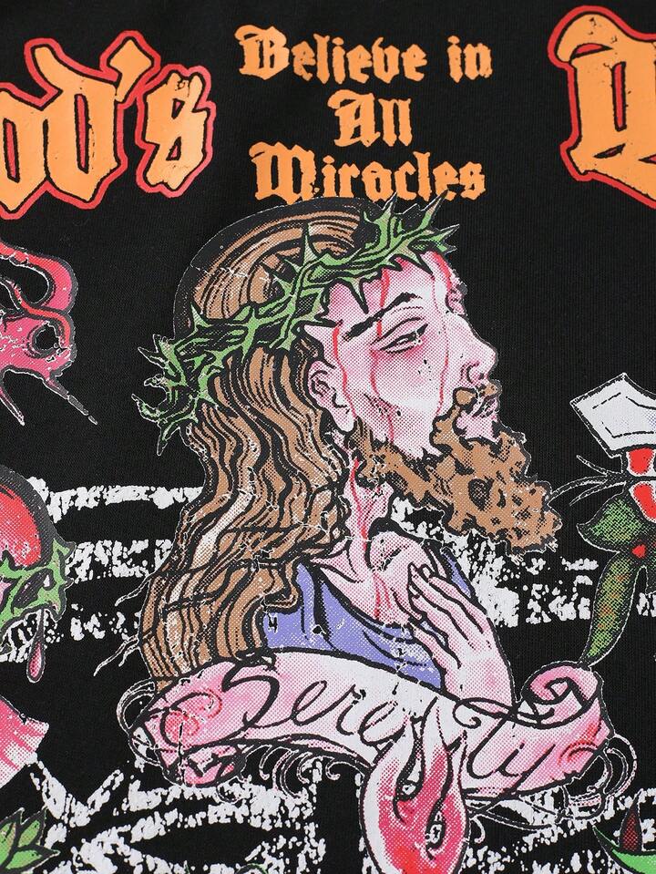 Street Life Men's Jesus & Cross Dropped Shoulder Loose Short Fit Graphic Tee