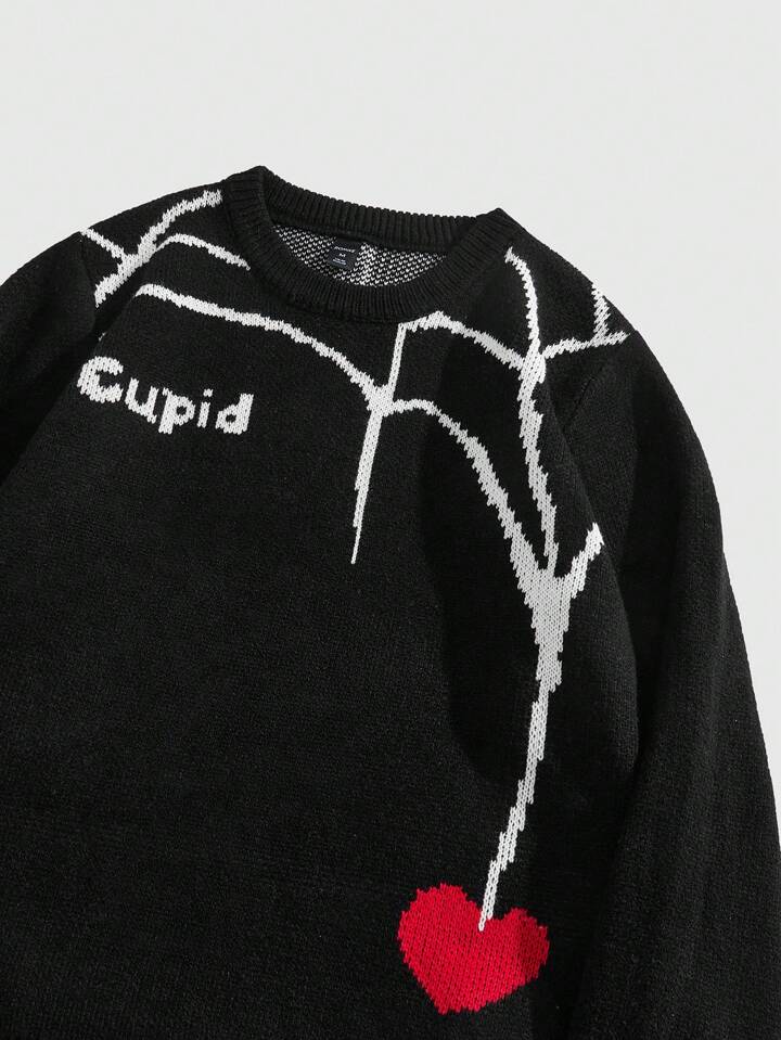 Goth Men's Letter Pattern Long Sleeve Knit Sweater, Autumn/Winter, Valentine