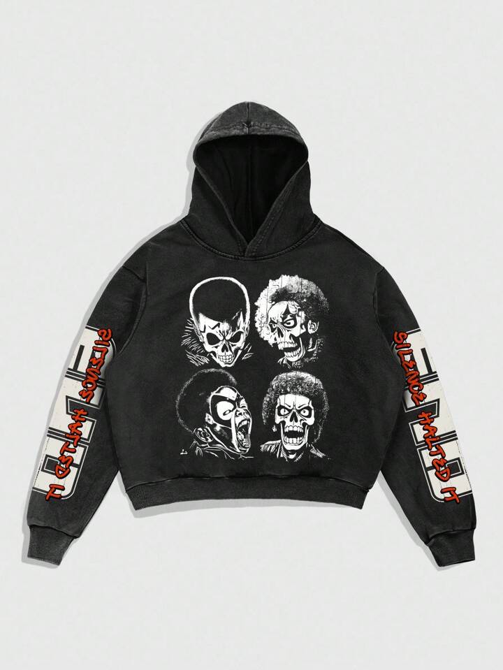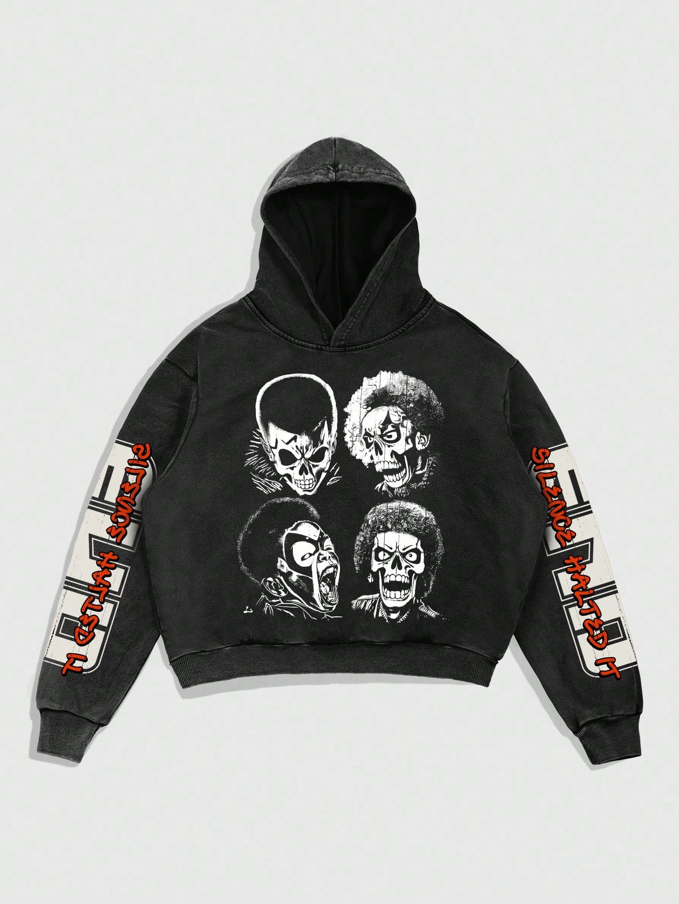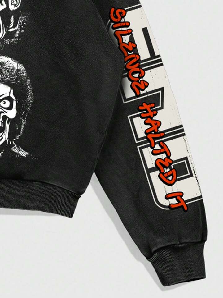 Goth Men's Letter & Skull Print Long Sleeve Thermal Lined Hoodie Sweatshirt