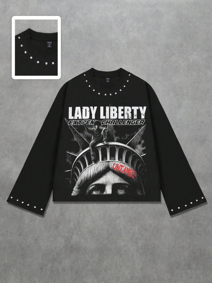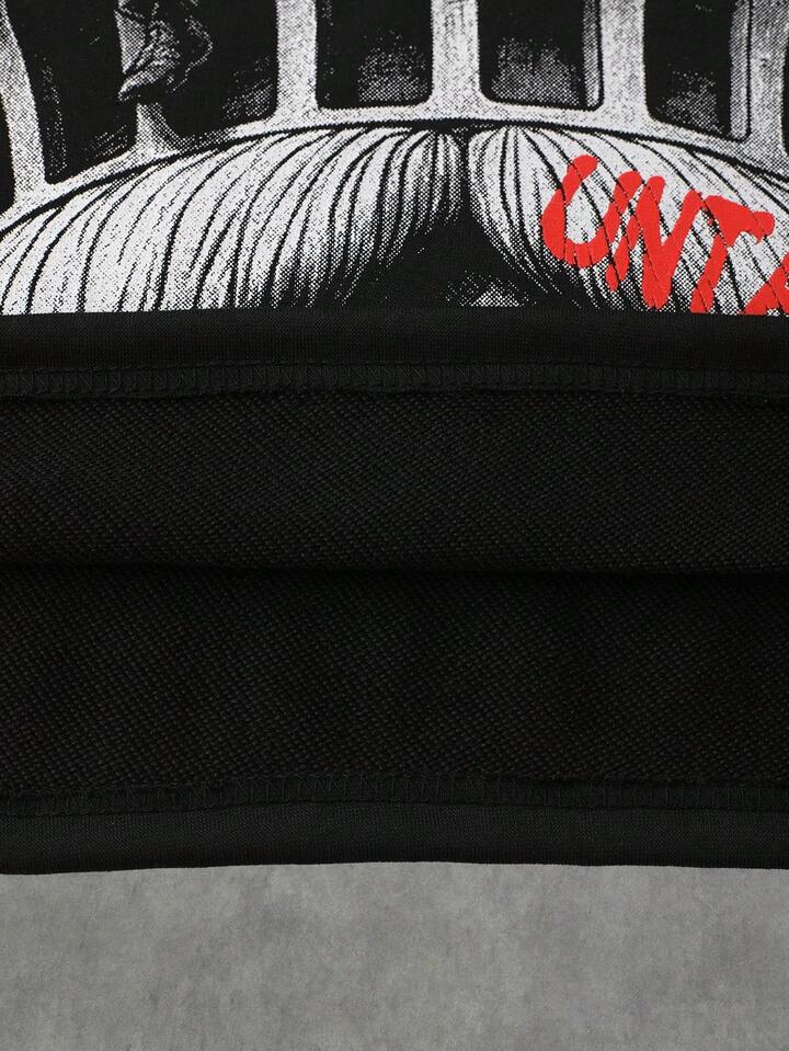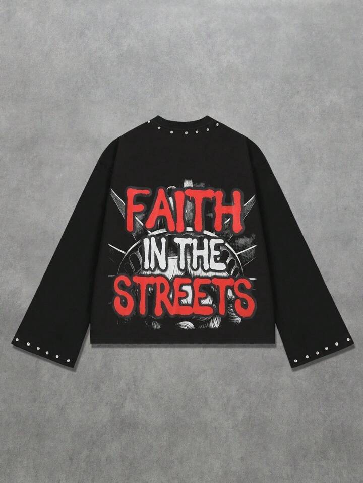 Goth Men's Printed Long Sleeve T-Shirt, Loose Cropped Fit