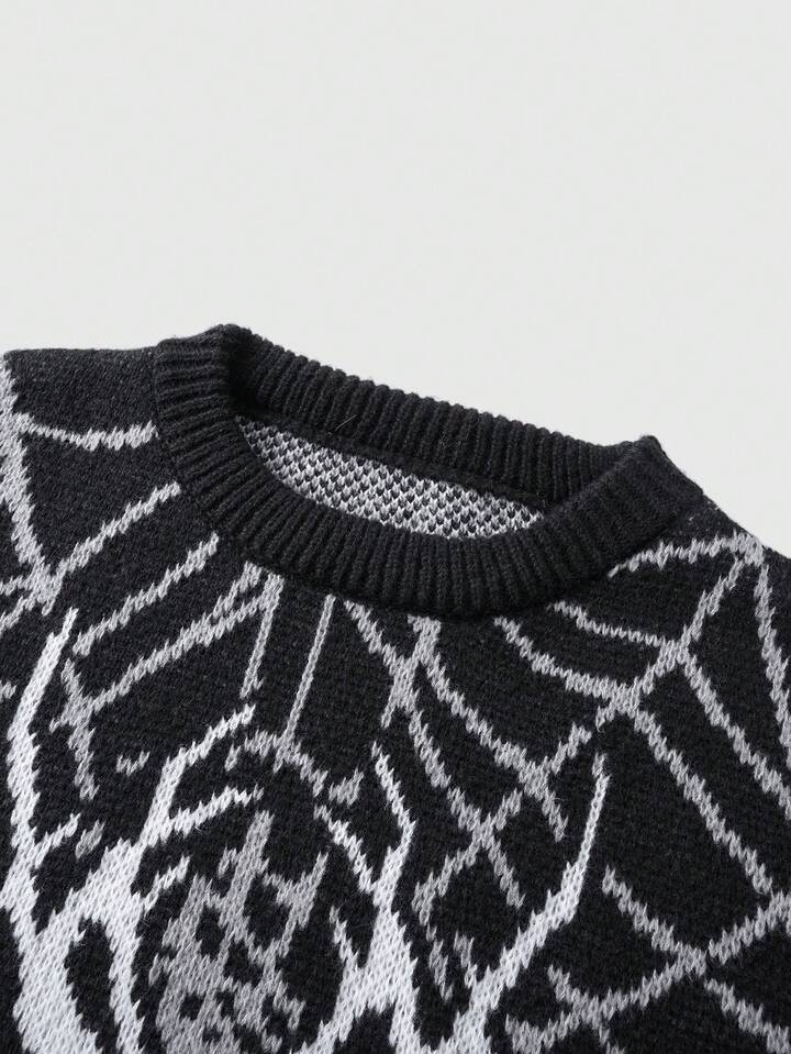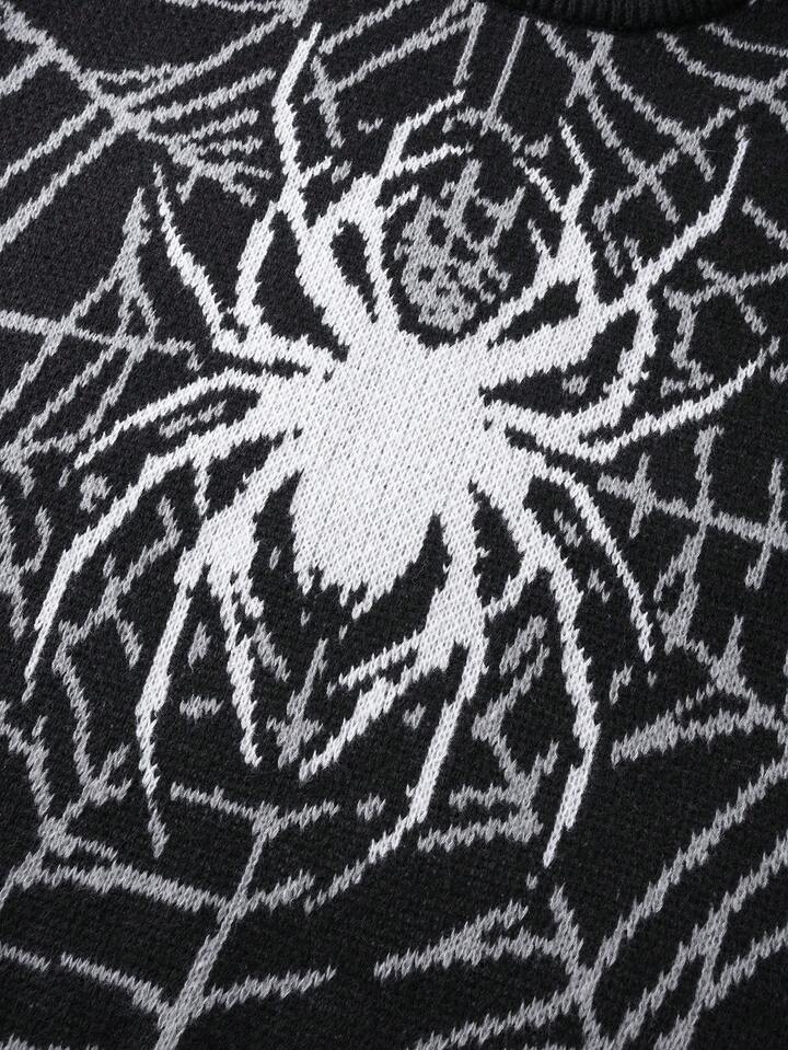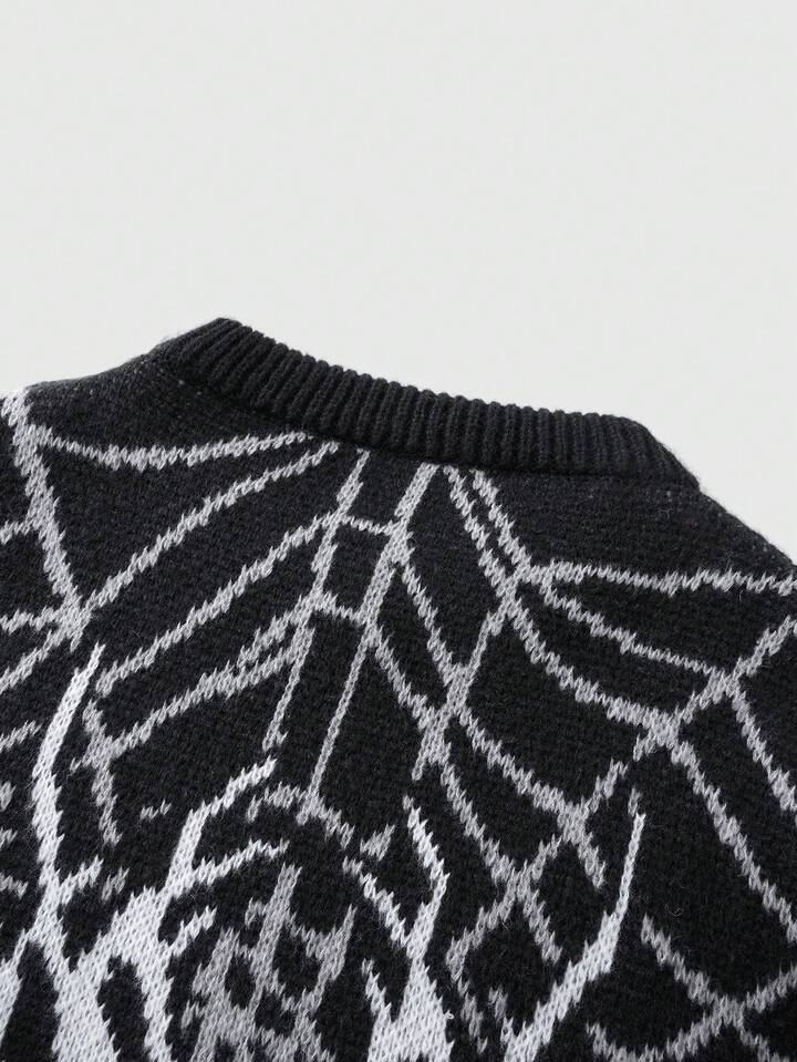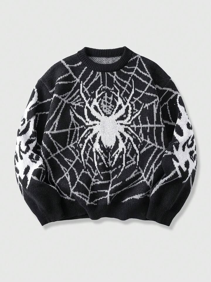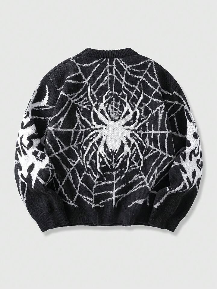 Goth Men's Spider Web Jacquard Loose Fit Long Sleeve Sweater