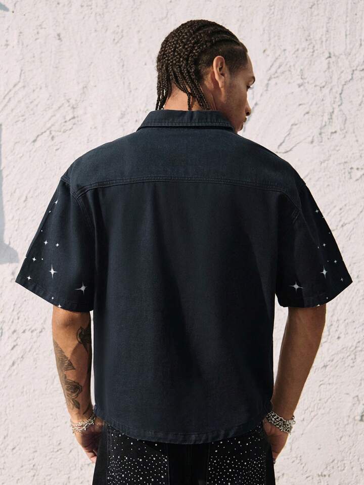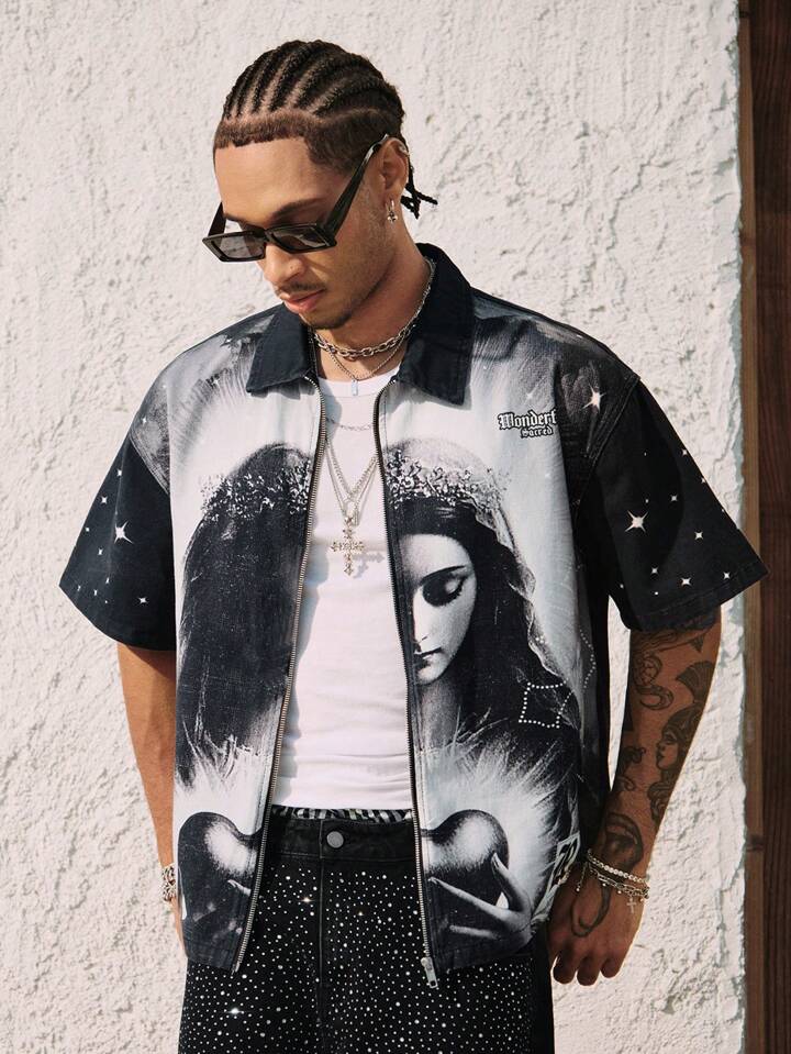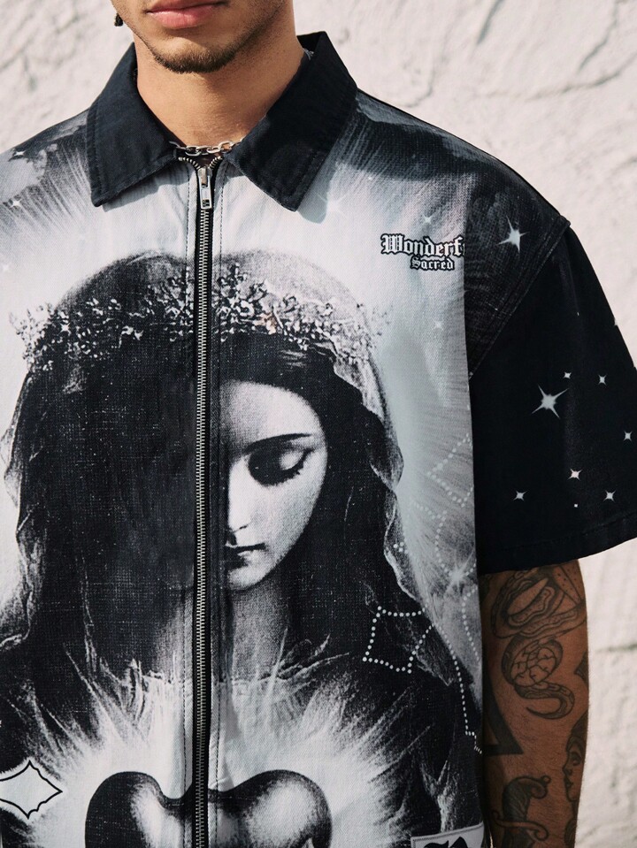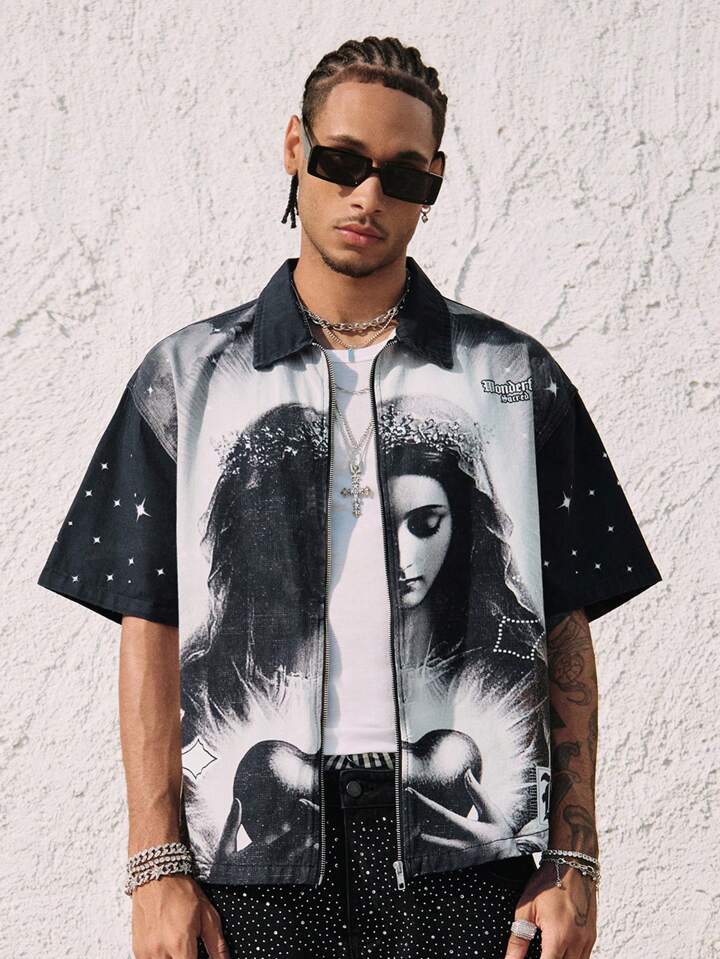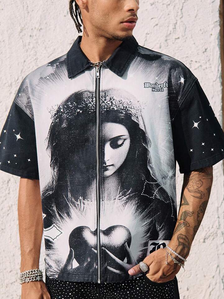Goth Men's Streetwear Religious Printed Denim Jacket Shirts