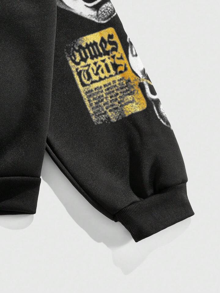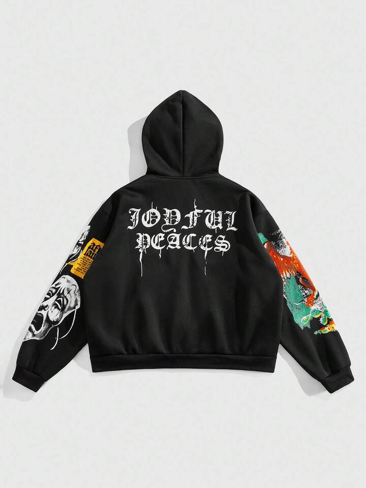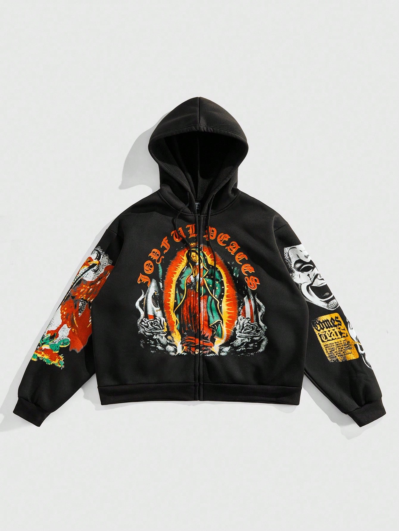 Goth Men's Streetwear Religious Printed Zip-Up Hoodie, Suitable For Everyday Wear, Fall Winter