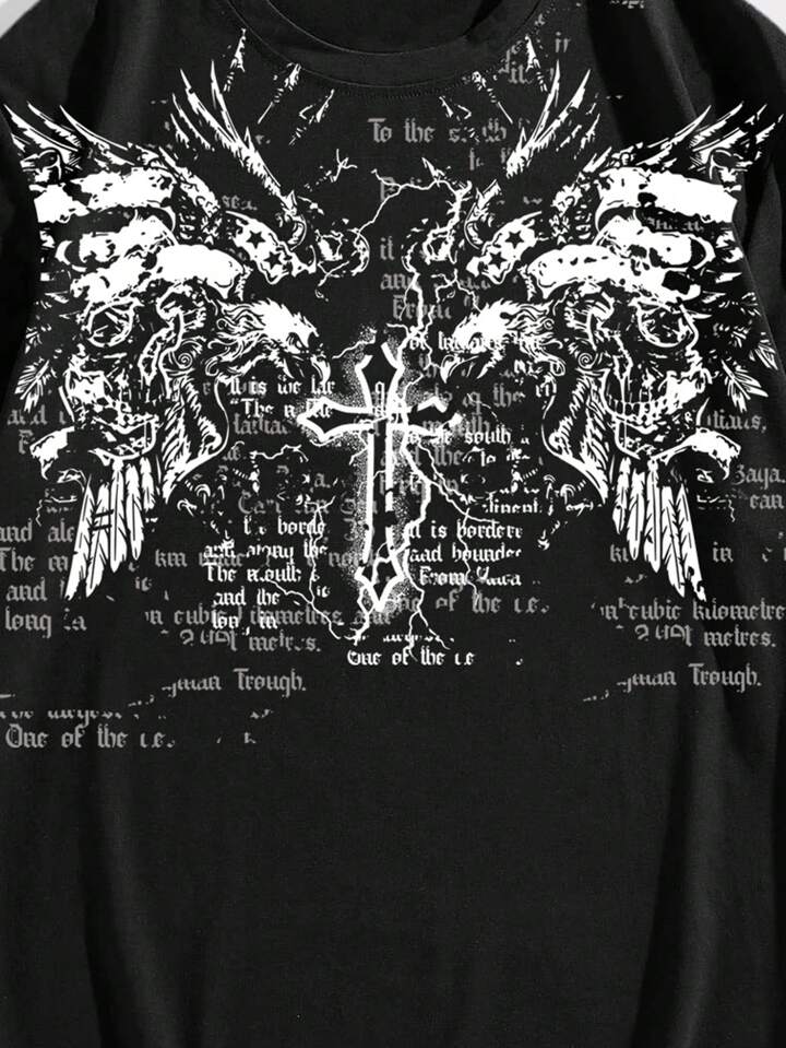 Goth Men's Summer Cross Slogan Graphic Round Neck Short Sleeve Casual T-Shirt, School, 2000s Style