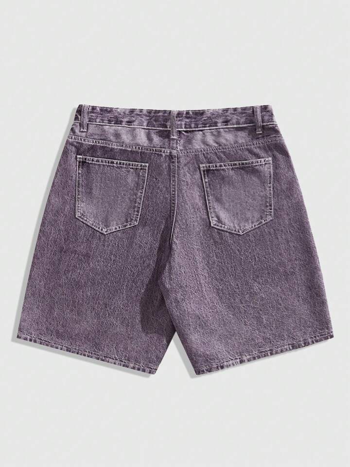 Goth Men's Vintage Religious Angel Print Patch Pocket Casual Denim Shorts
