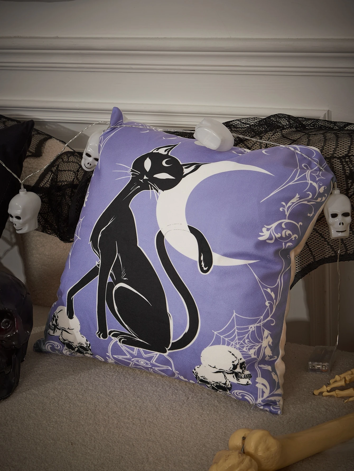 Goth Moon & Cat Print Cushion Cover Without Filler