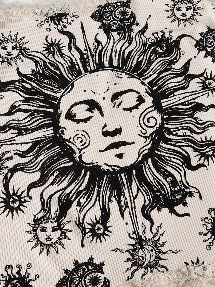 Goth Mysterious Sun God Printed Women's Slim Fit Lace Camisole Top, School