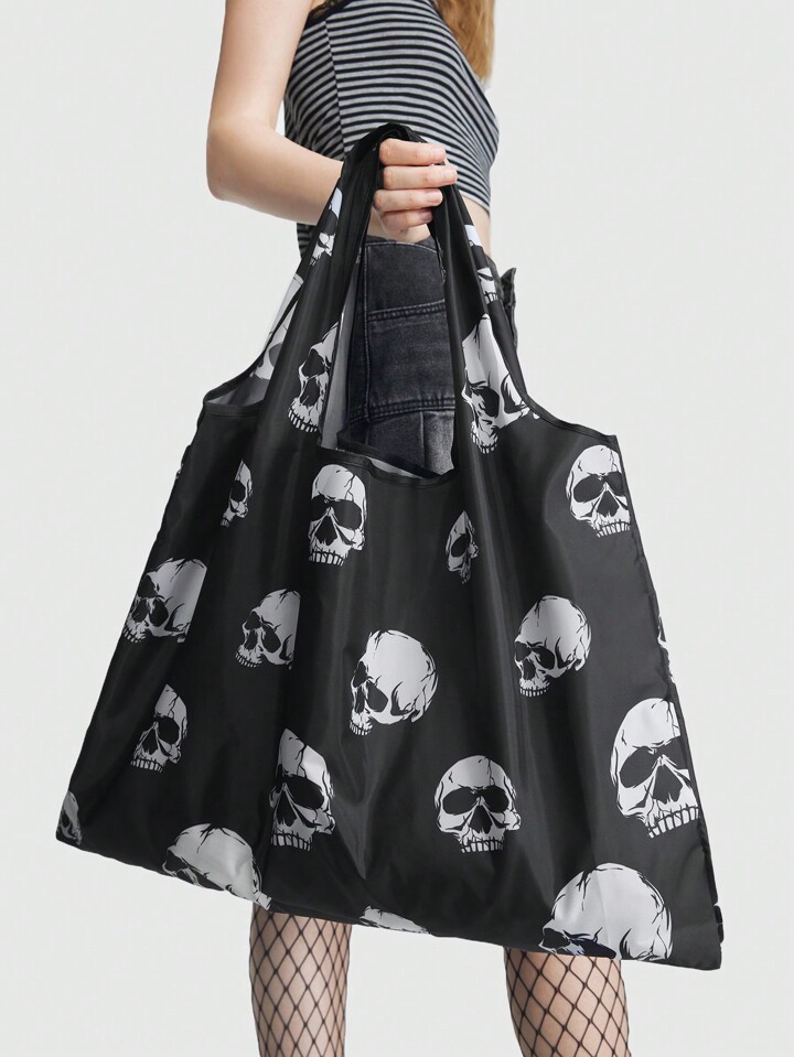 Goth Oversized Shopper Bag Punk Skull Print For Shopping