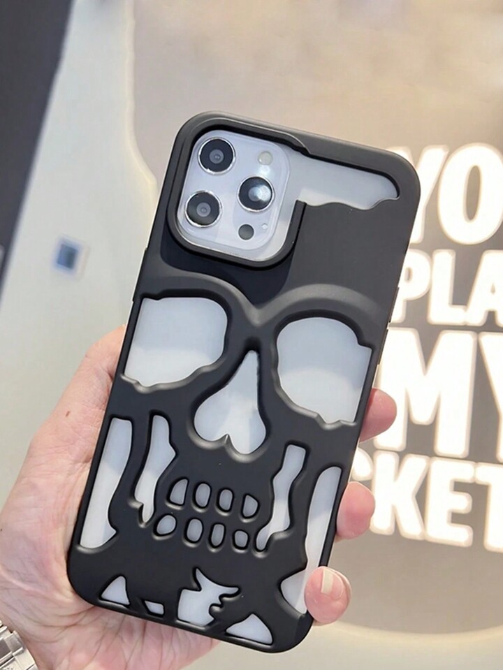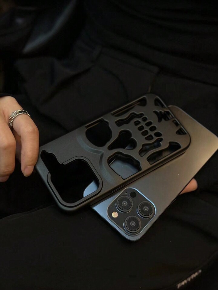 Goth Personalized Cool Skull Pattern Hollow Out Breathable Black Phone Case Compatible With IPhone 12 13 14 Series And Other Mobile Phones