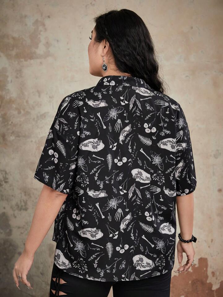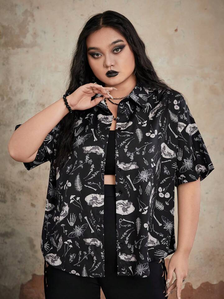 Goth Plus Allover Print Button Front Shirt
