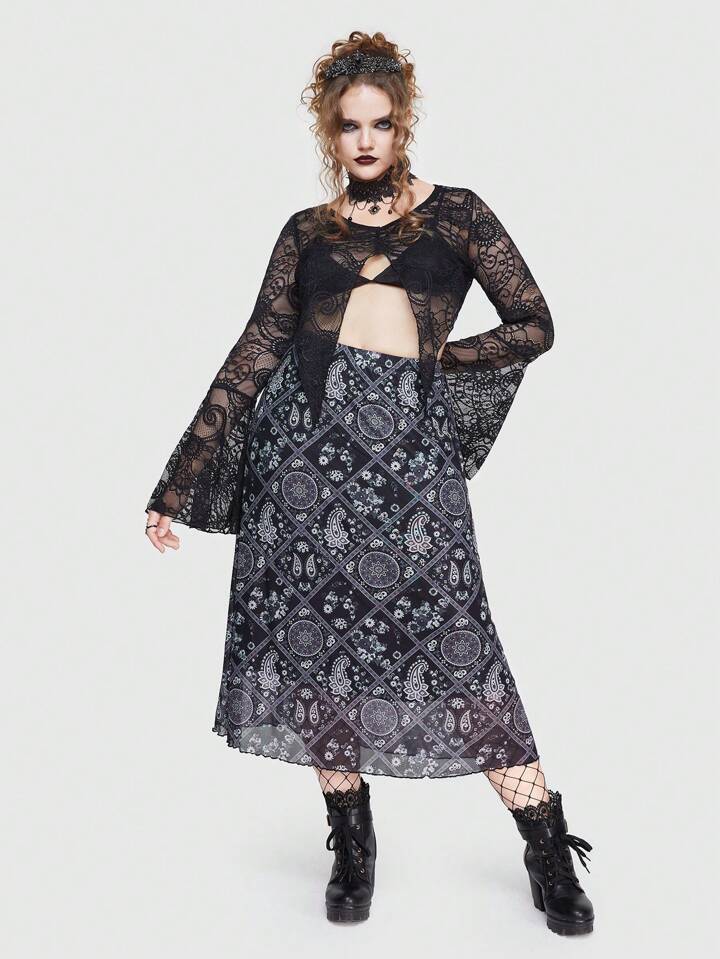 Goth Plus Floral Lace Flounce Sleeve Asymmetrical Hem Top