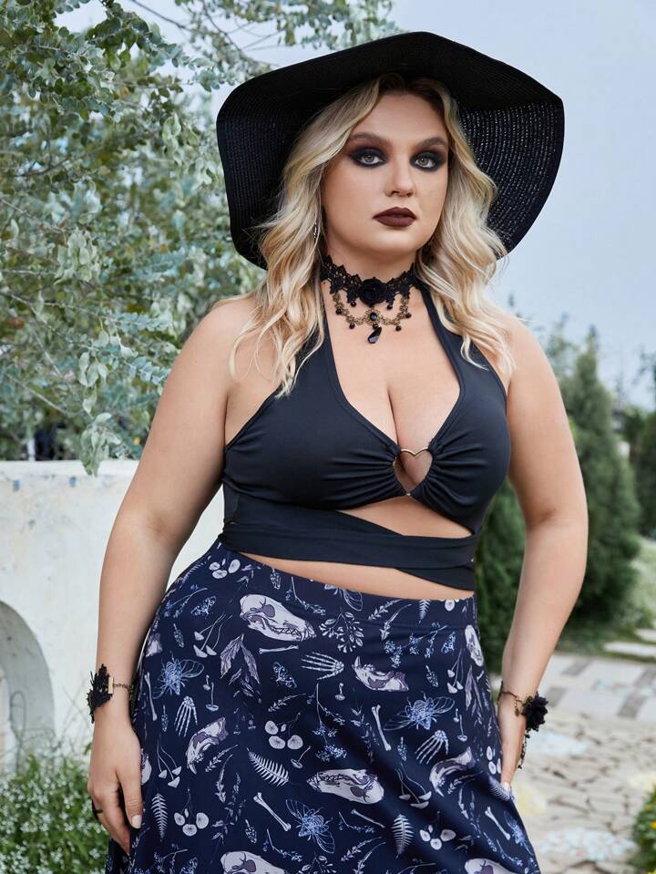 Goth Plus Heart Ring Detail Tie Backless Halter Top