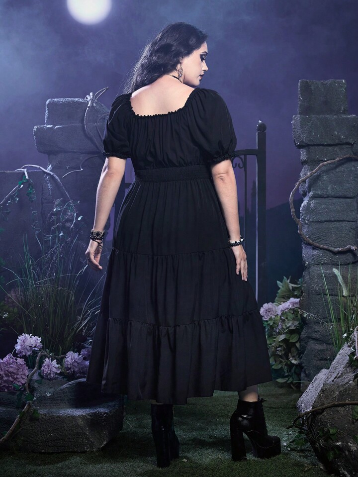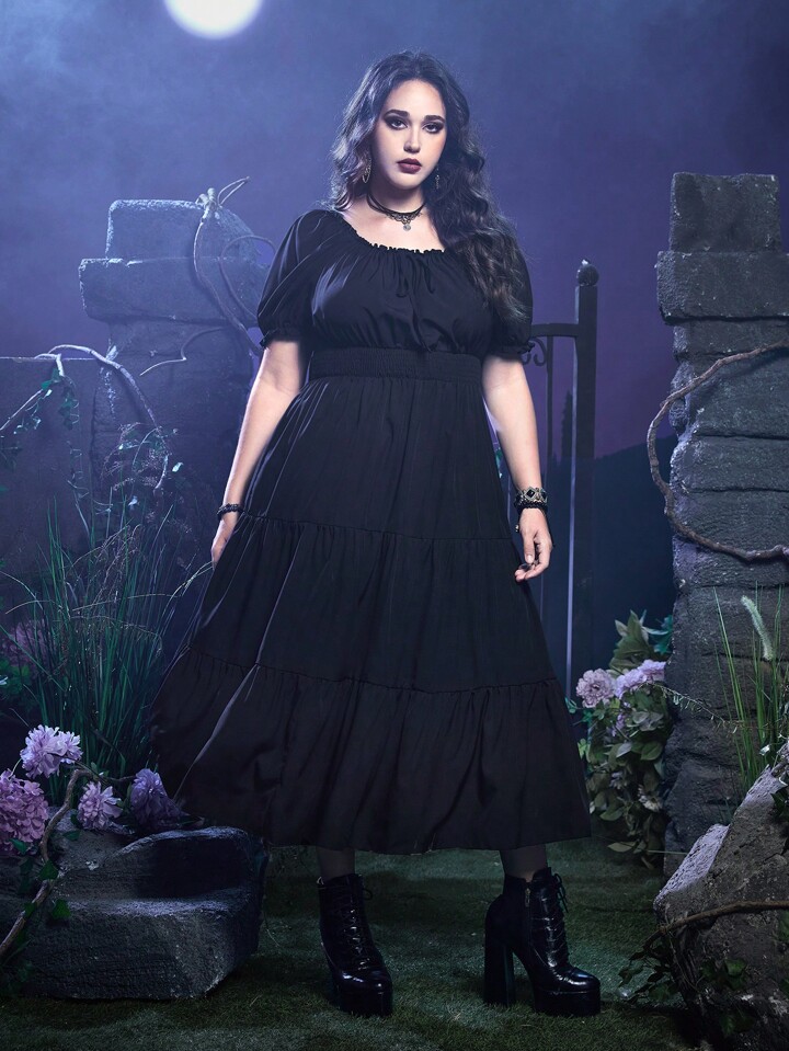 Goth Plus Puff Sleeve Ruffle Hem Dress Without Corset