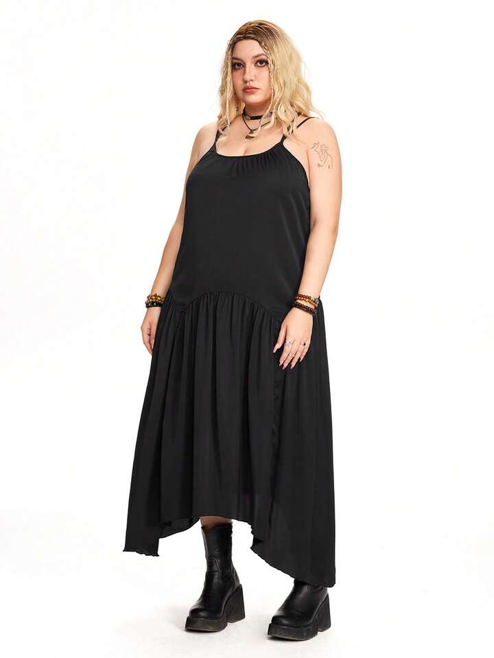 Goth Plus Size Women Halloween PUNK Suspender Five-Pointed Star Lace-Up Dress