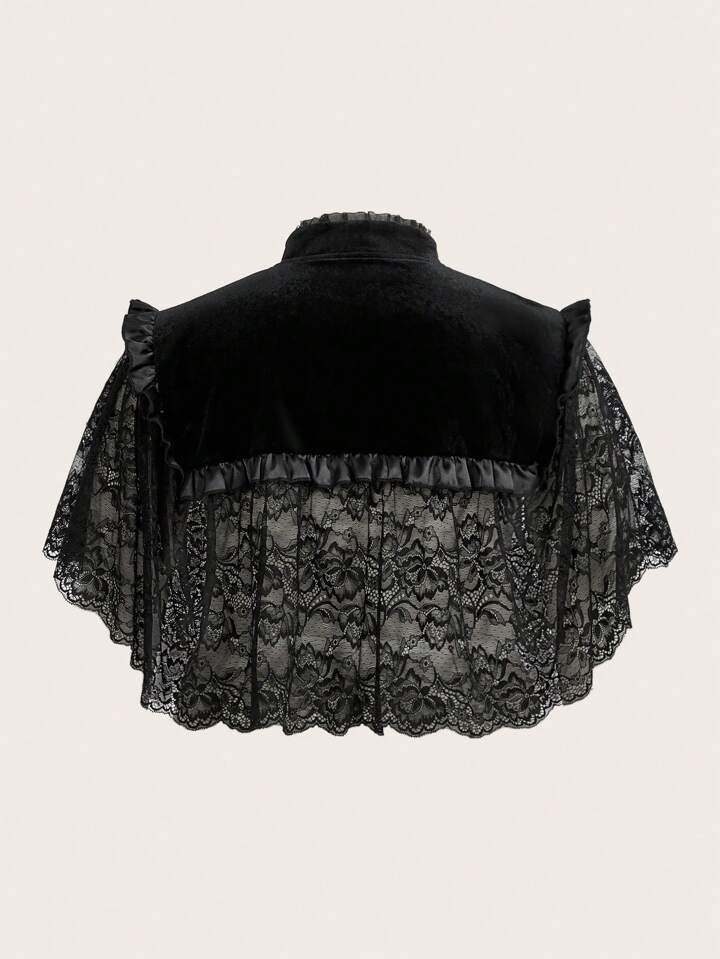 Goth Plus Tie Front Lace Cape Top