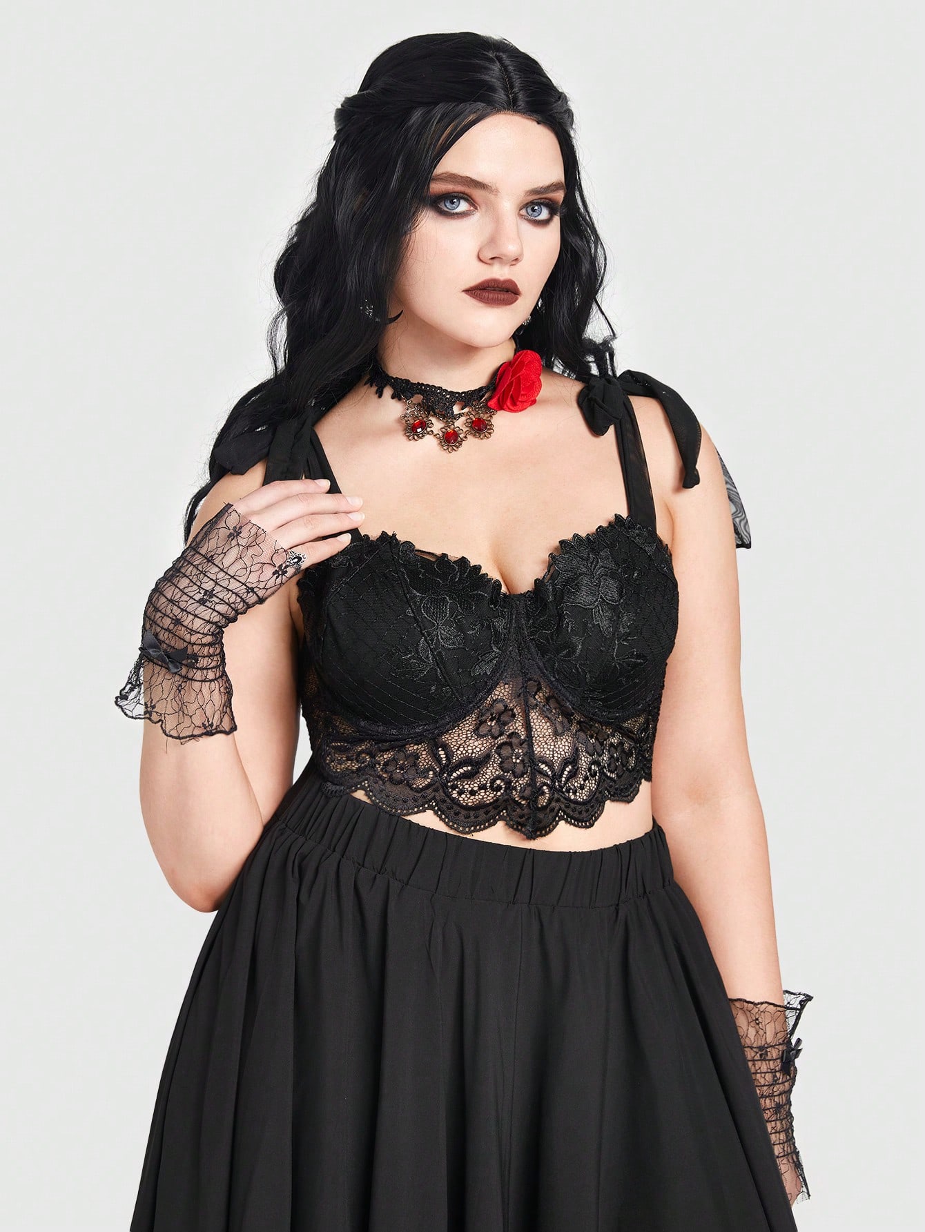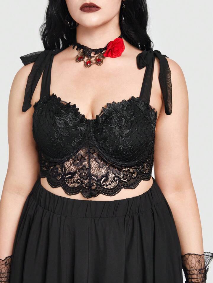 Goth Plus Tie Shoulder Lace Cami Top