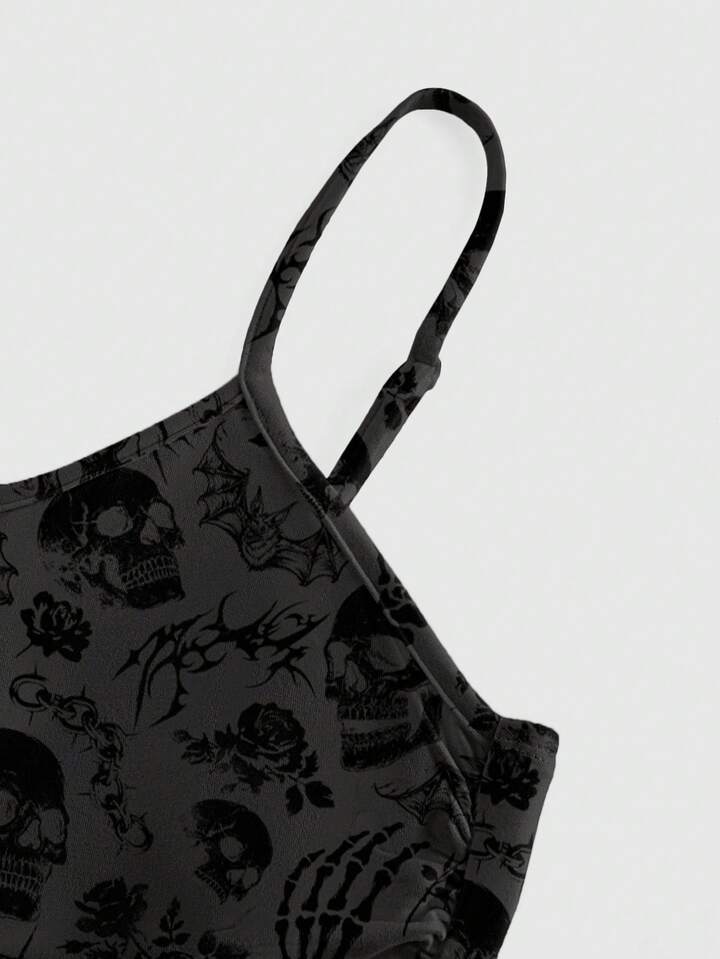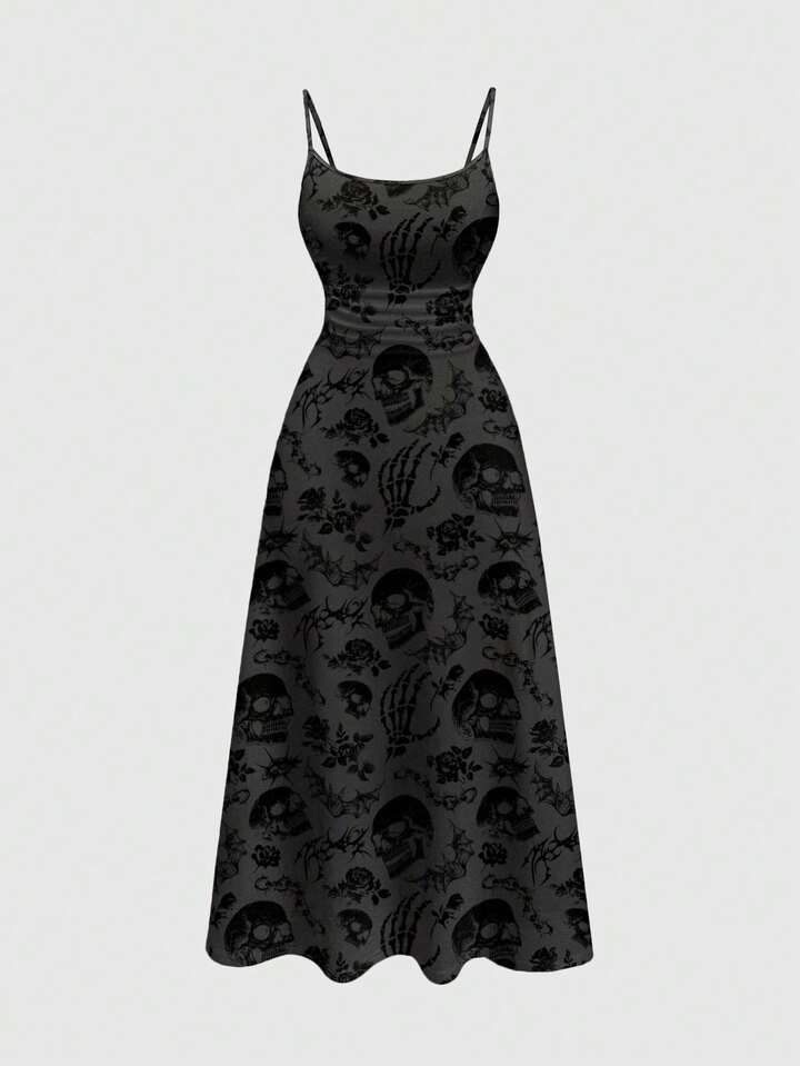 Goth Sexy Dark Skull Punk Wing Rose Thorn A-Line Women's Dress
