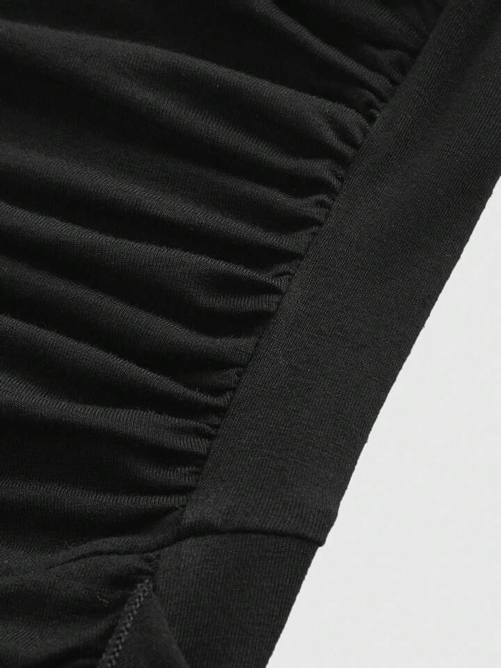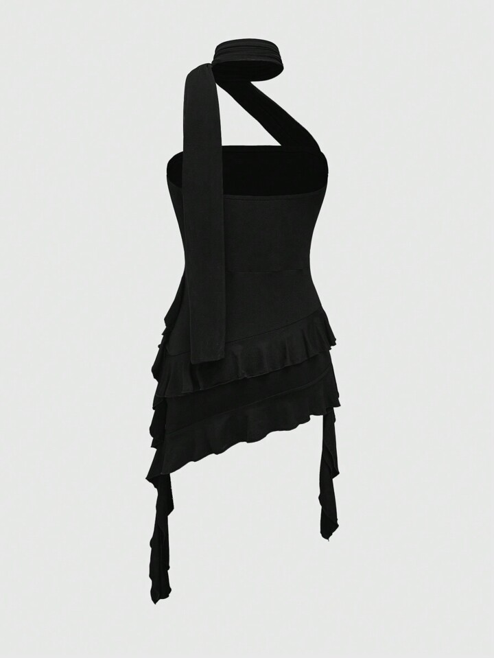 Goth Sexy Mini Asymmetrical Hem Layered Solid Black Strapless Party Bodycon Dress For Women