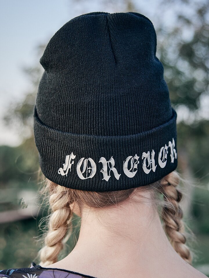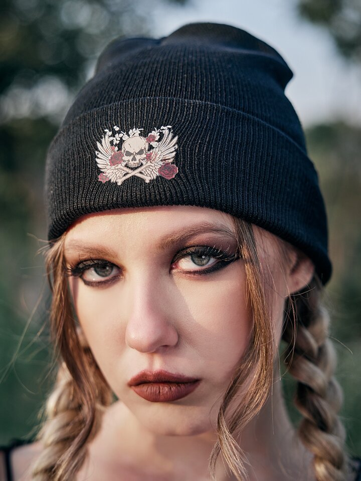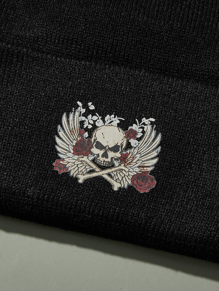 Goth Skull & Letter Graphic Cuff Beanie