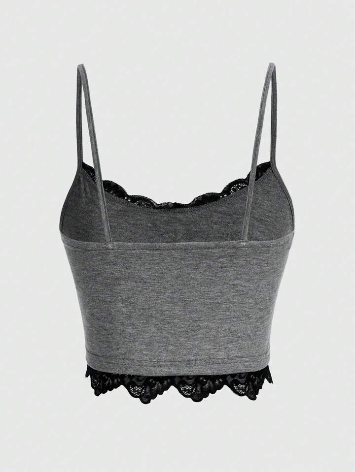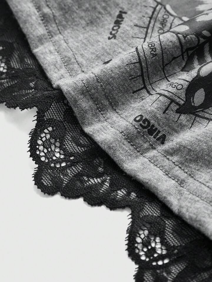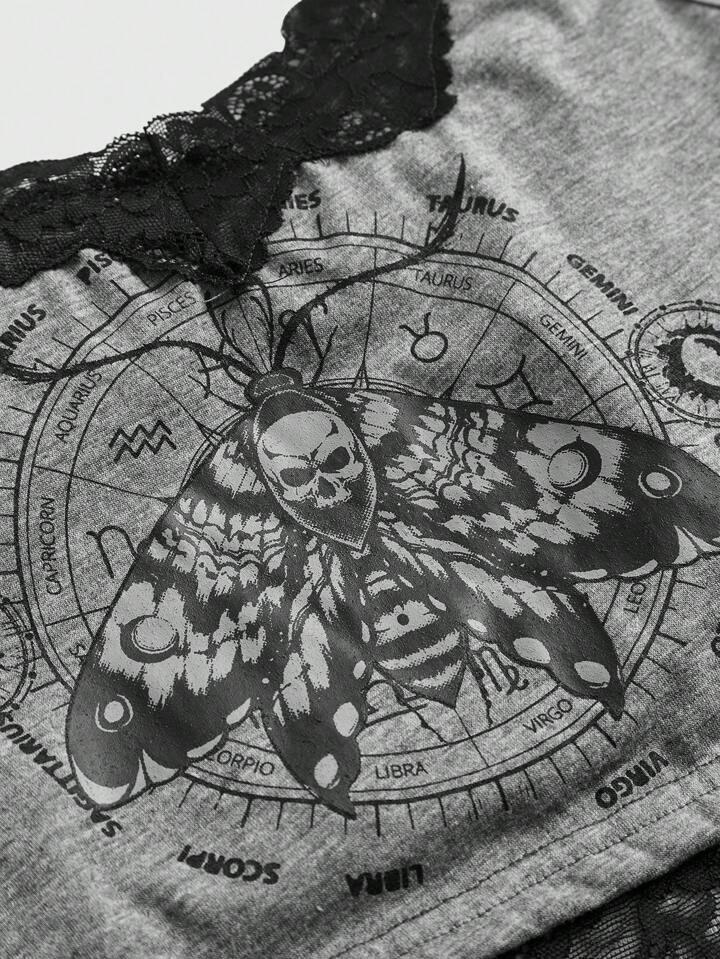 Goth Skull Print Contrast Lace Cami Top, School