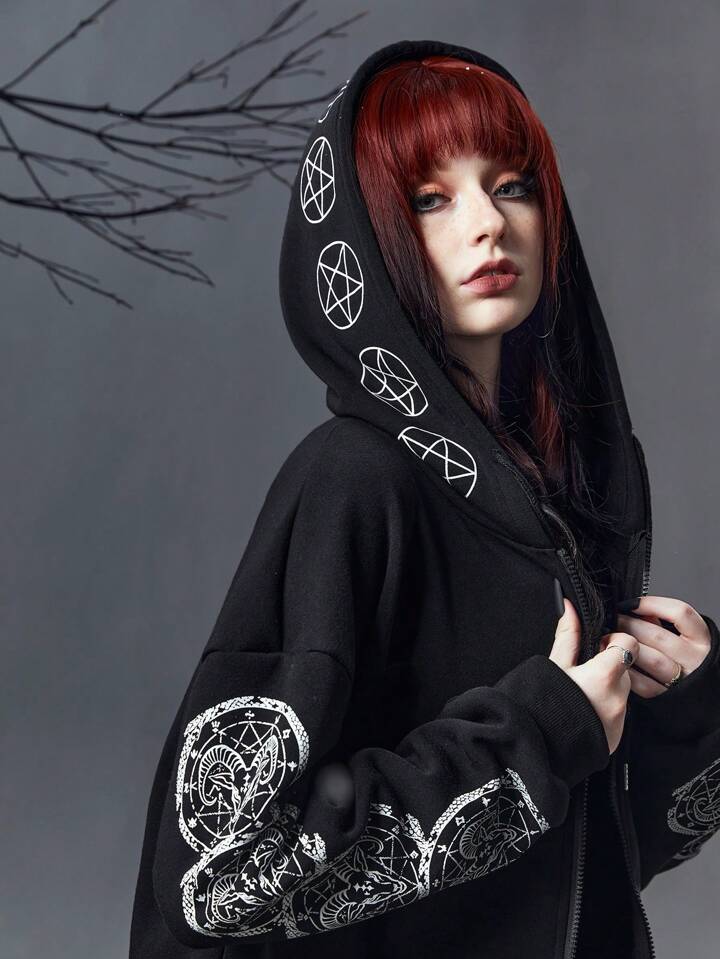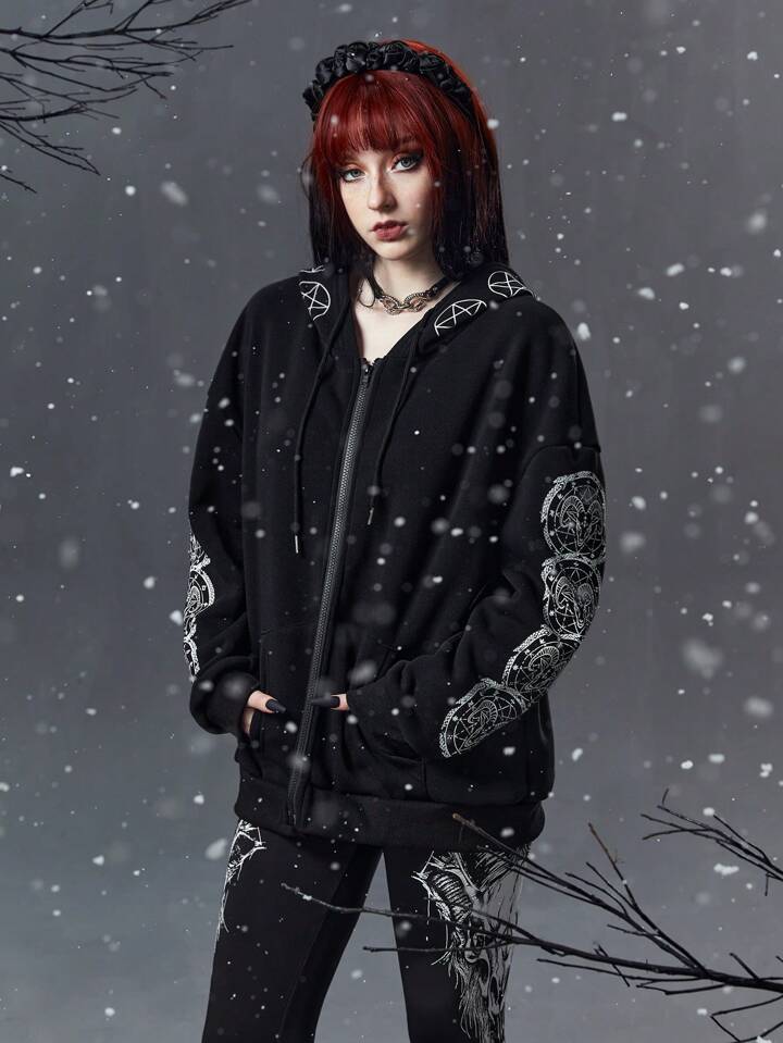 Goth Skull Print Hooded Sweatshirt