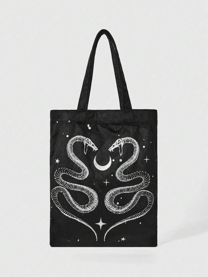 Goth Small Shopper Bag Casual Snake Graphic For Shopping