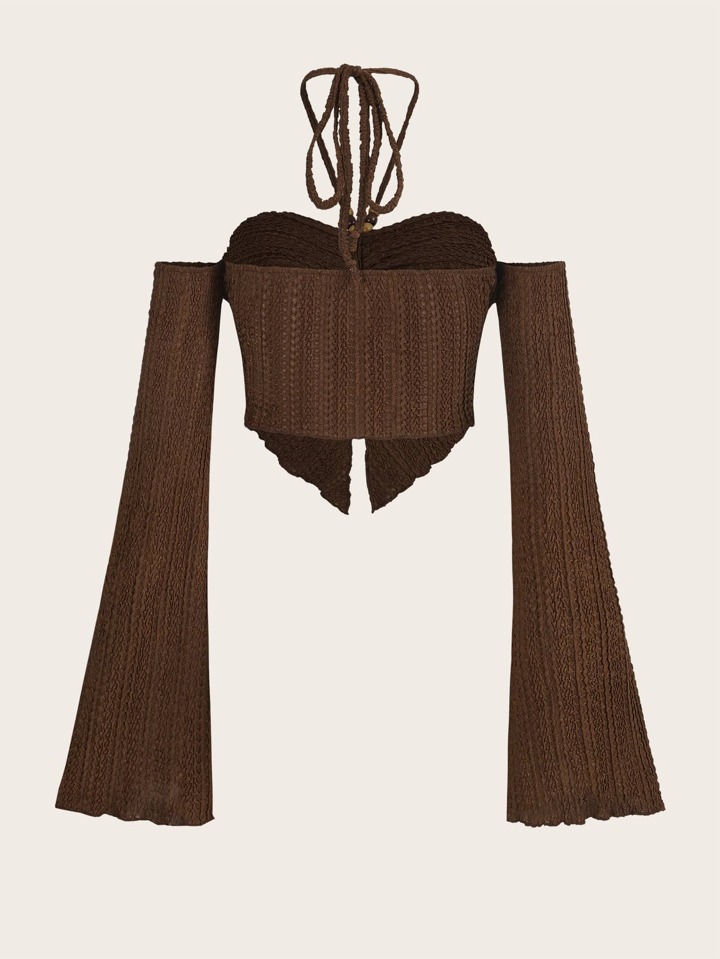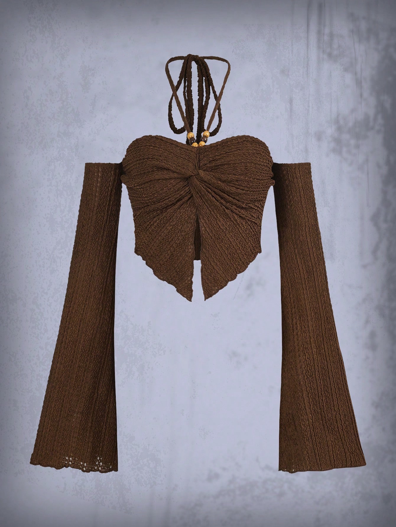 Goth Solid Twist Front Halter Neck Asymmetrical Hem Top