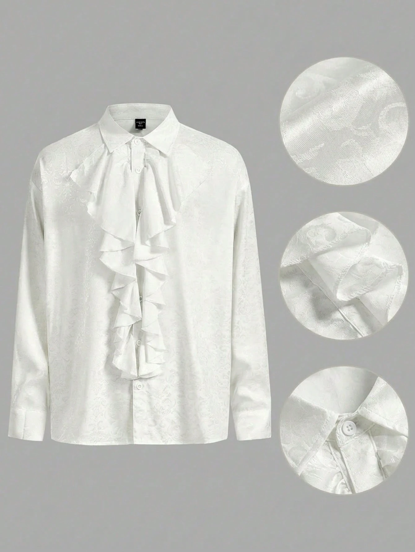 Goth Spring Casual Graphic White Men'S Solid Color Minimalist Casual Long Sleeve Shirt With Ruffle Trim