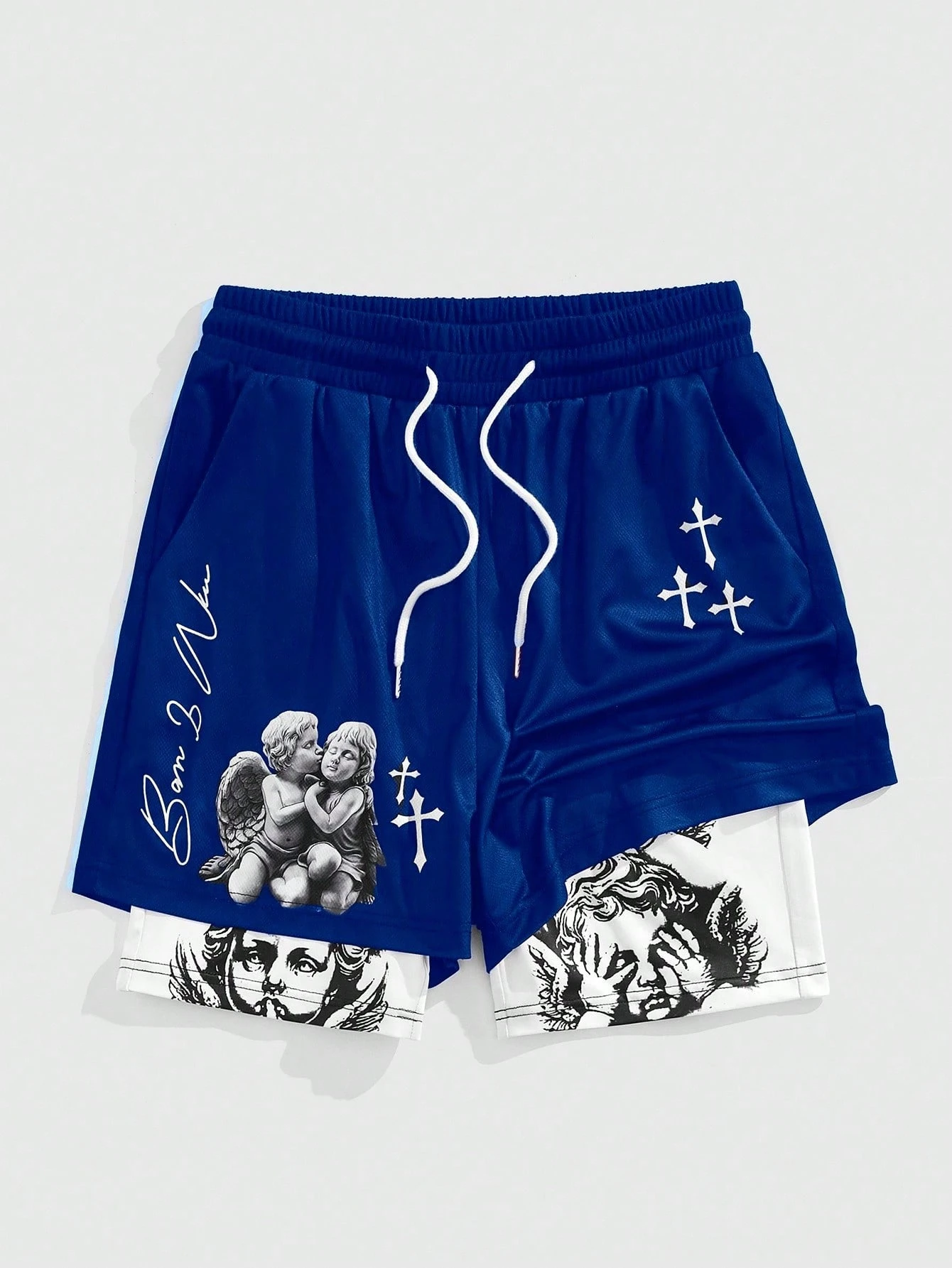 Goth Spring/Summer Casual Graphic Men'S Drawstring Waist Angel Cross Print Casual Versatile Daily Outdoor Sports Shorts