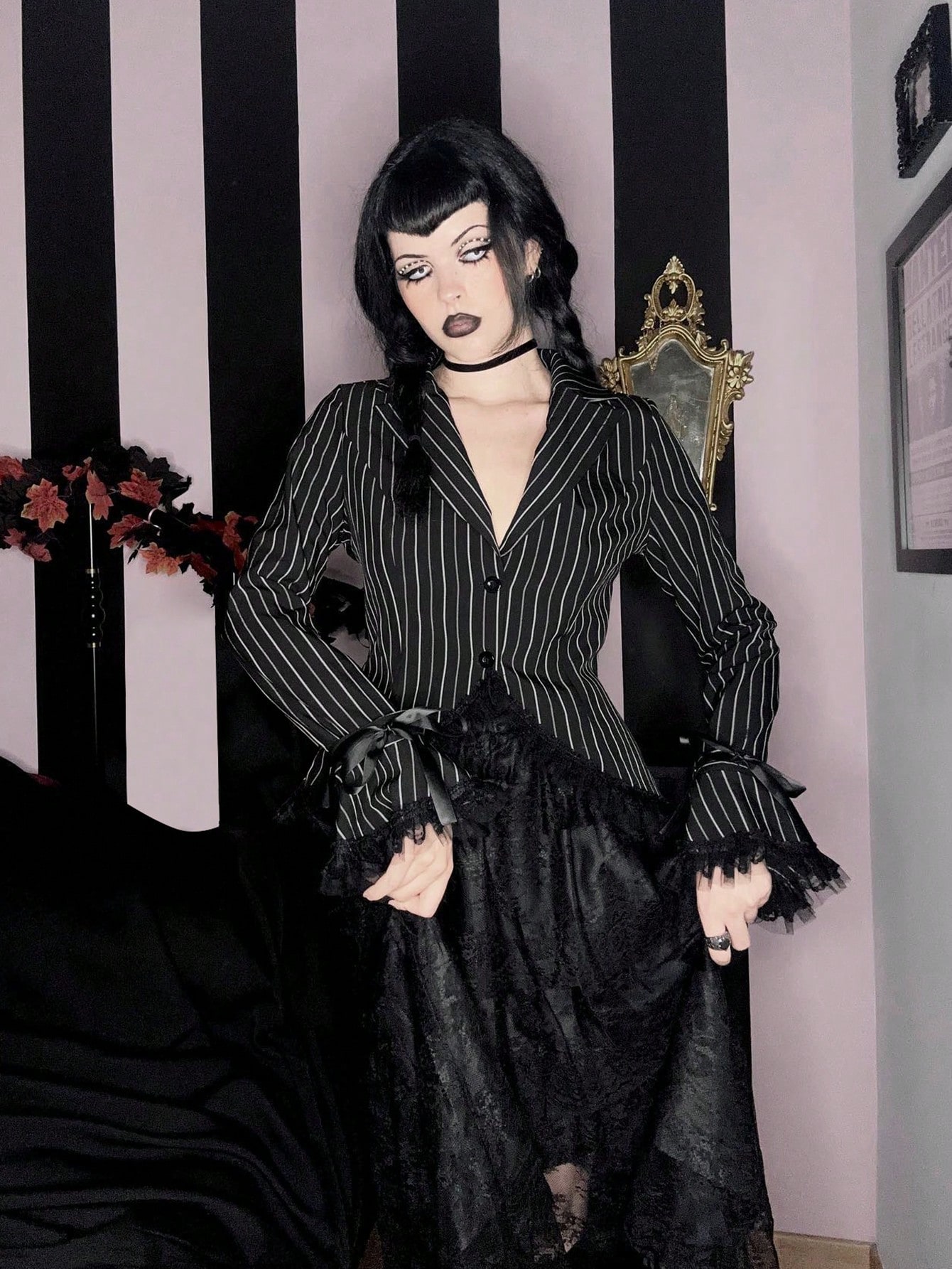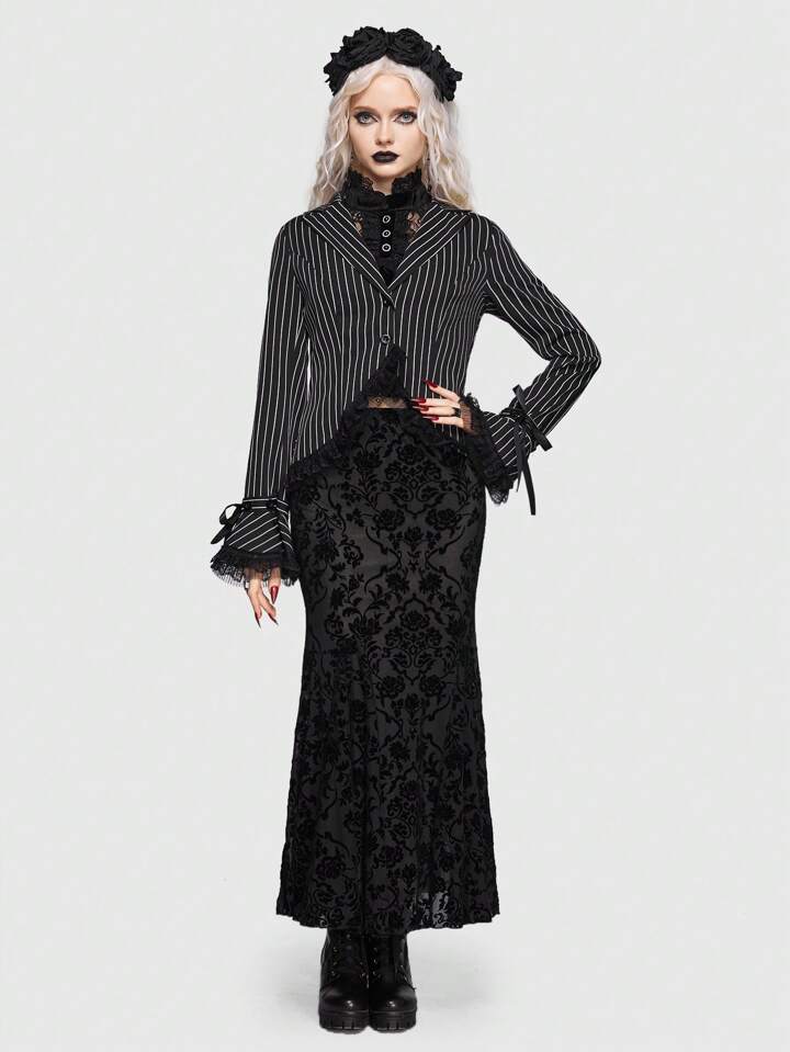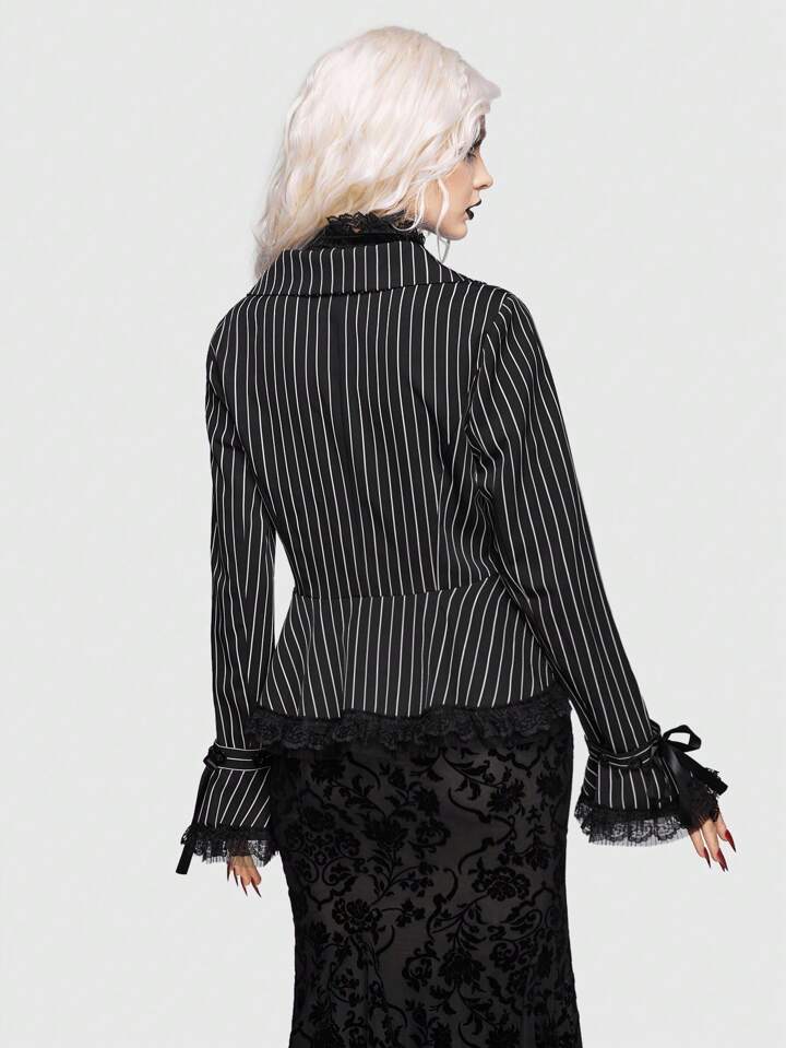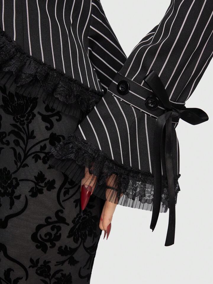 Goth Striped Print Knot Cuff Crop Blazer