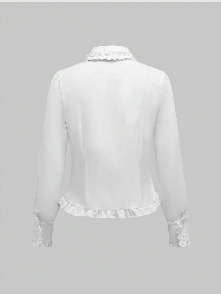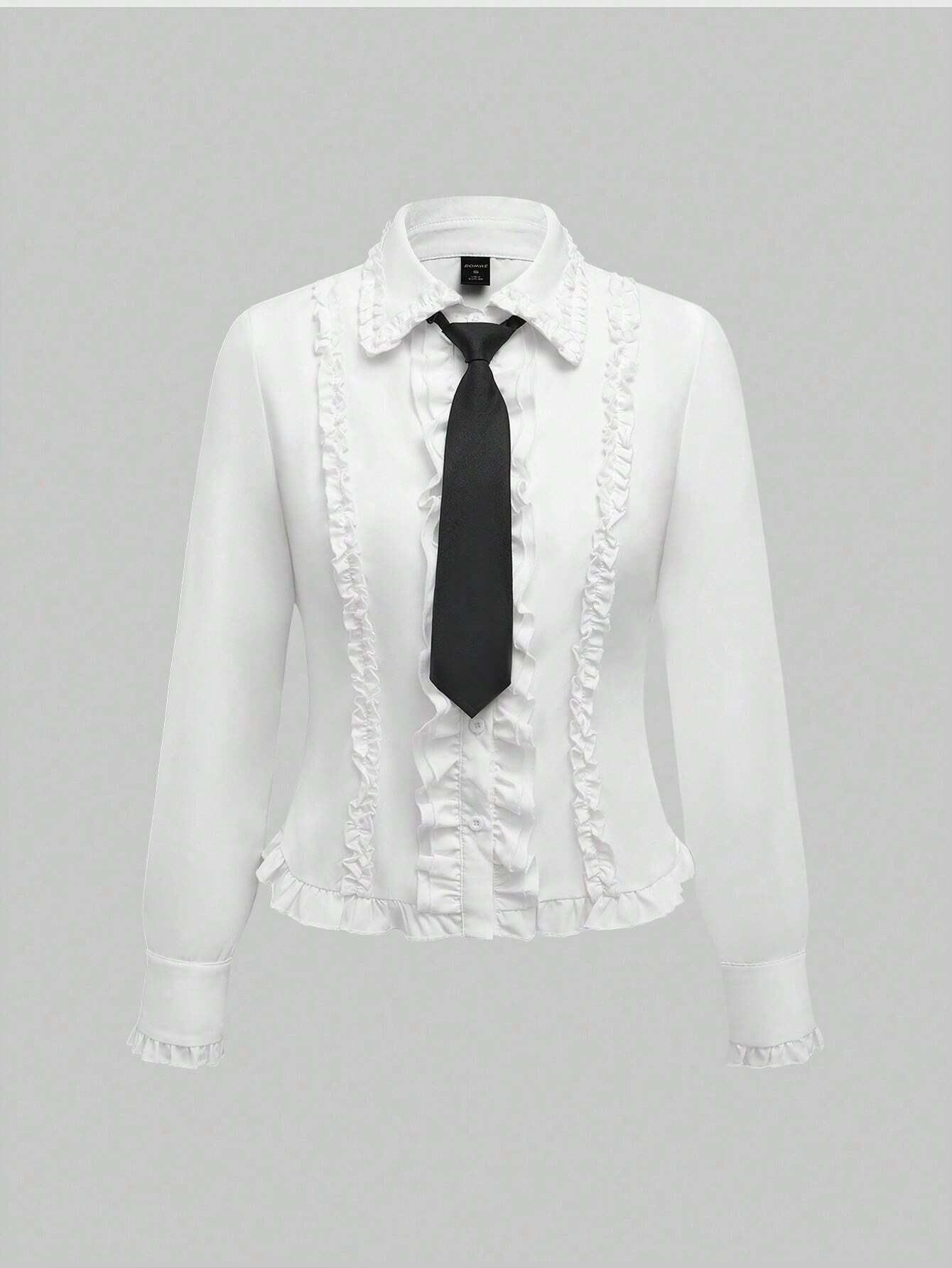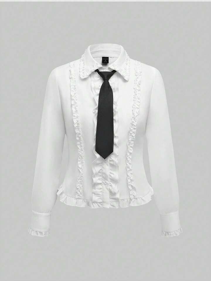 Goth Style Tie Neck Cross Stud Decor Fitted Long Sleeve Women Blouse