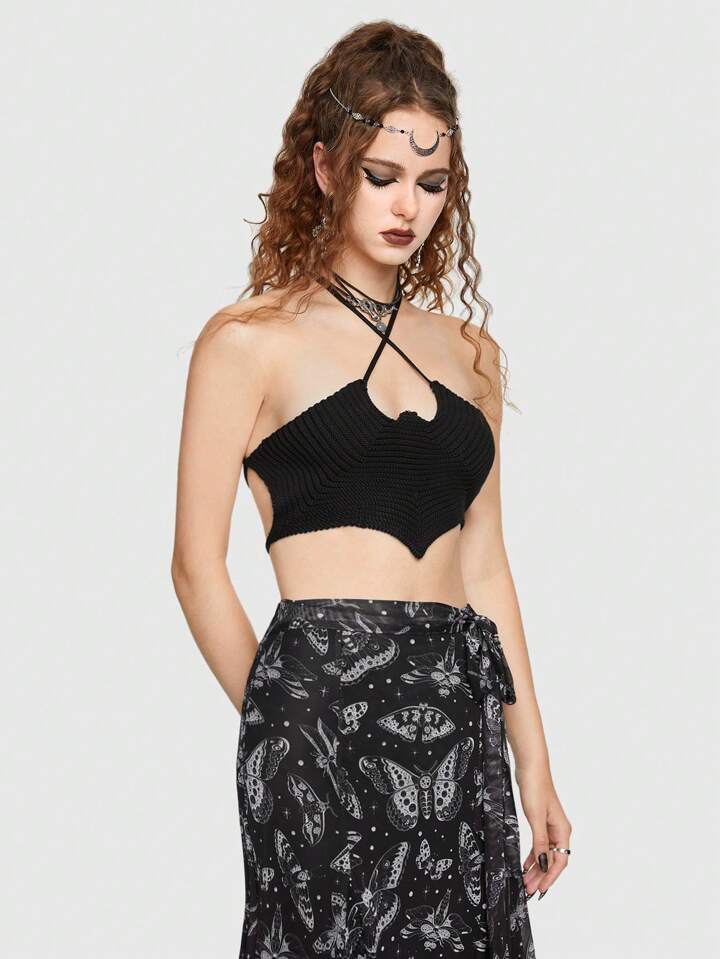 Goth Summer Hollow Out Crop Cardigan & Halter Crochet Knit Top