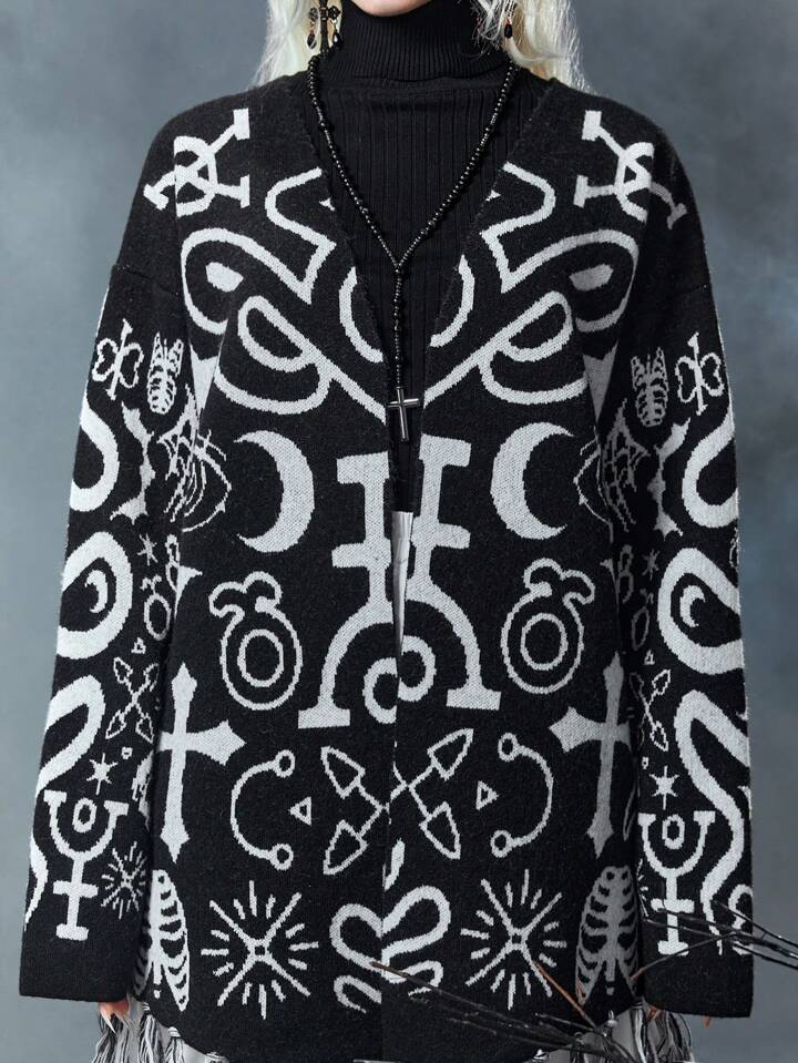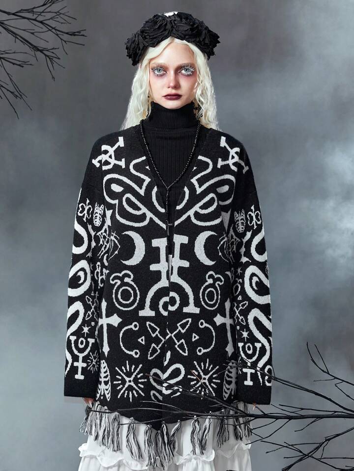 Goth Tasselled Patterned Cardigan With Open Front Design