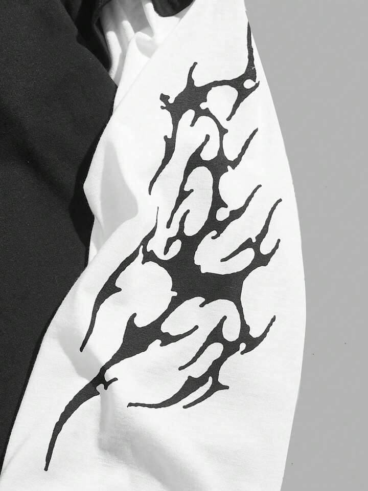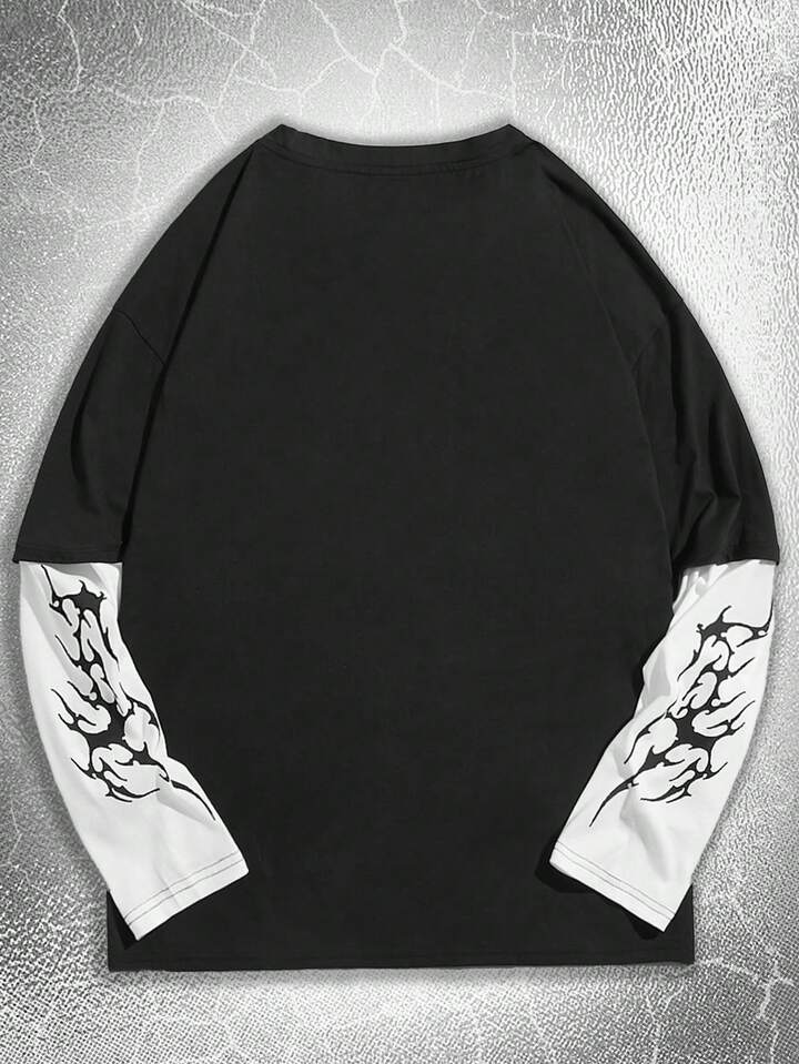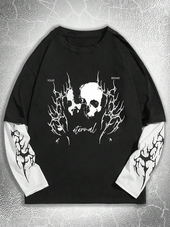 Goth Teen Boy Skull Print Round Neck Long Sleeve Casual T-Shirt