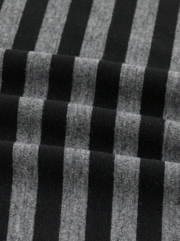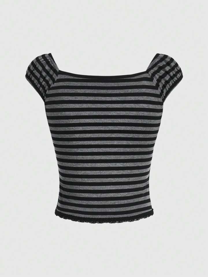 Goth V-Neck Striped Women Casual T-Shirt With Bow Decoration, School
