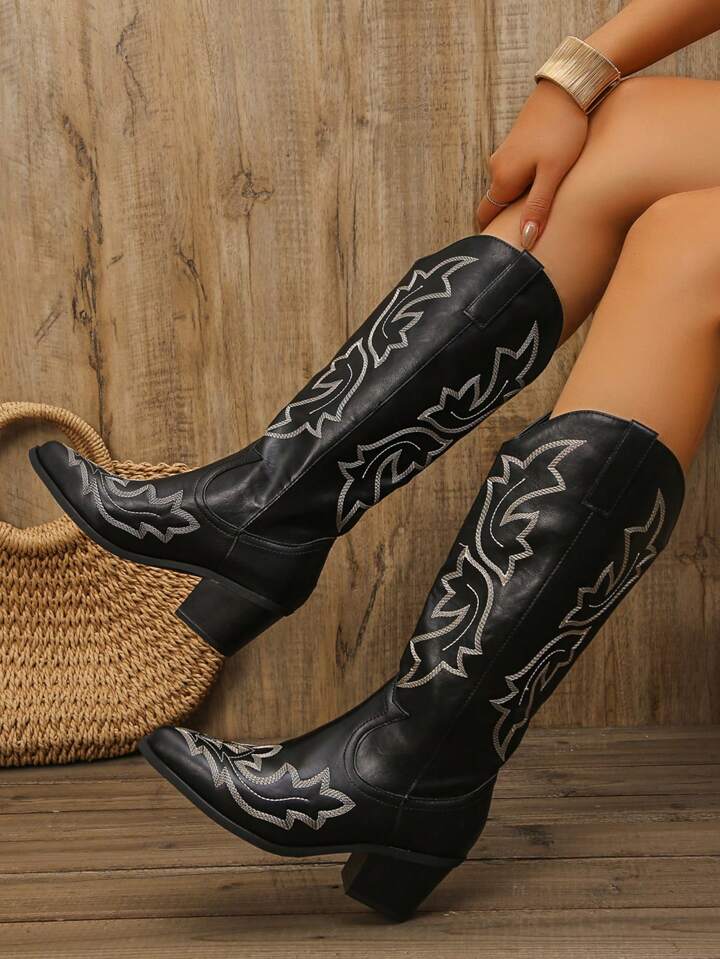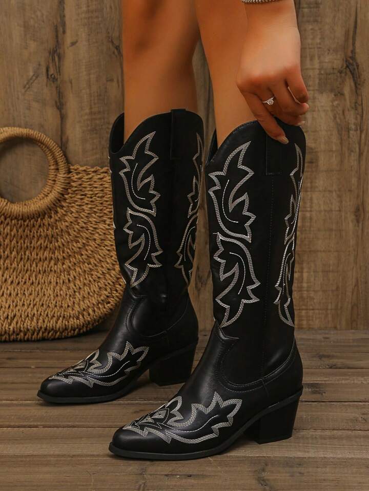 Goth Vintage Black Mid-Calf Western Boots, Cowboy Boots For Women