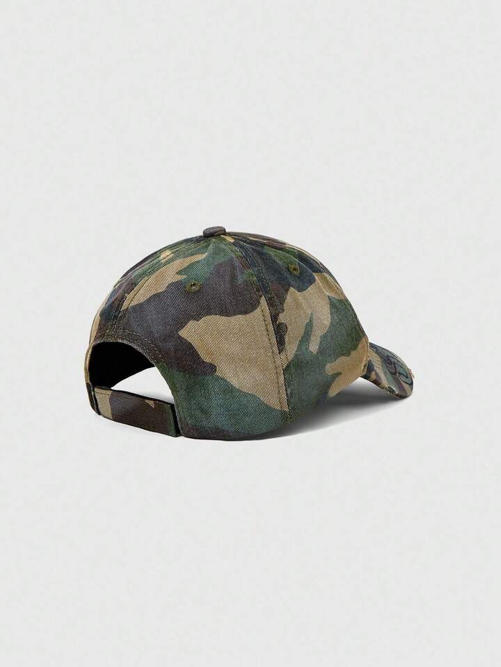 Goth Vintage Camo Cross Rivet Print Asymmetric Baseball Cap, Retro Sun Hat, Personalized Fashionable Multipurpose Unisex Snap Button