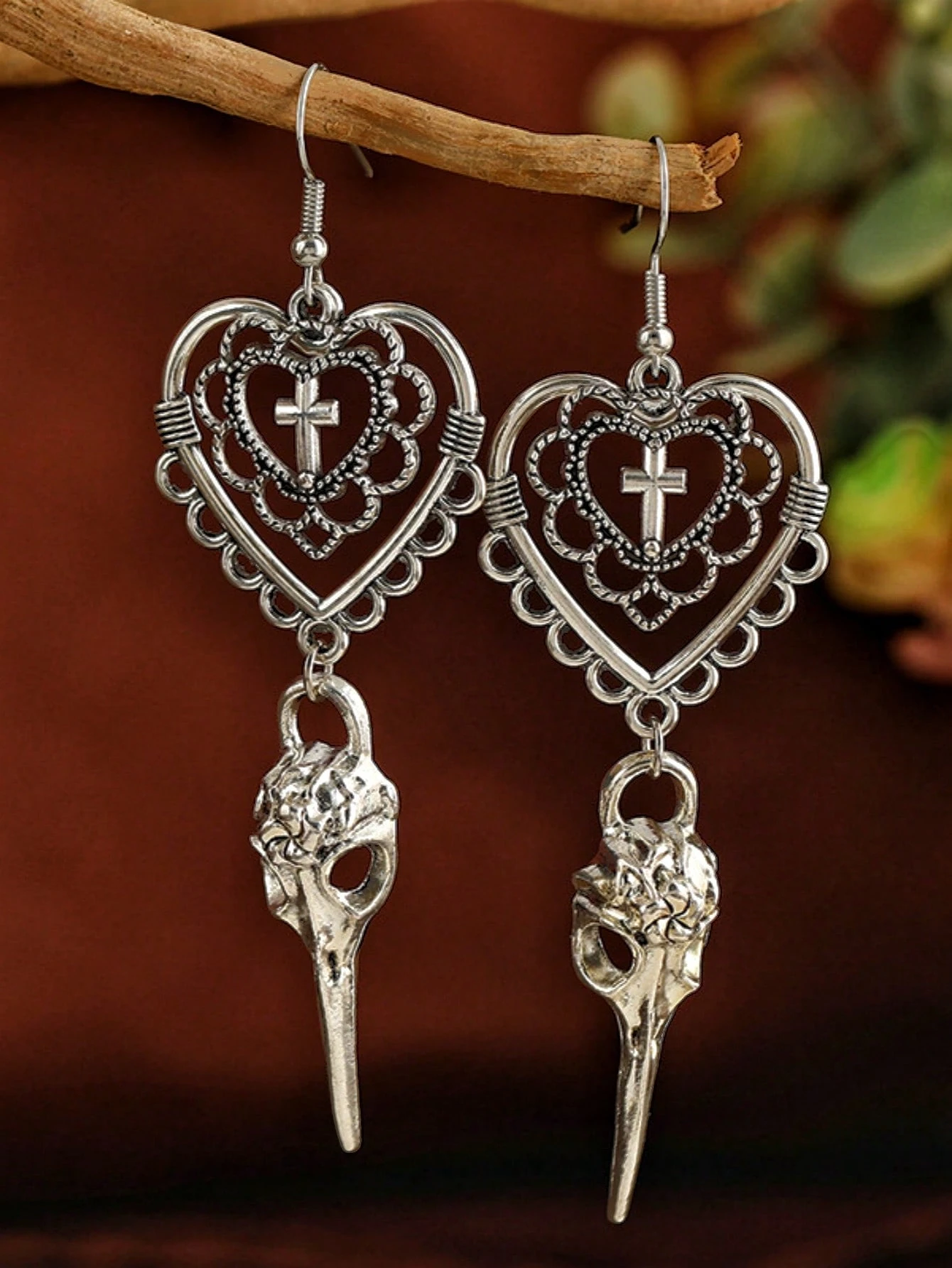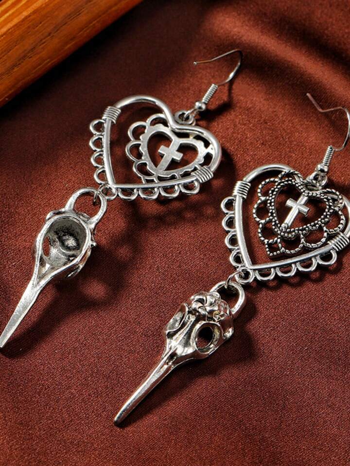 Goth Vintage Hollow-out Heart, Cross, Skull Dangle Earrings