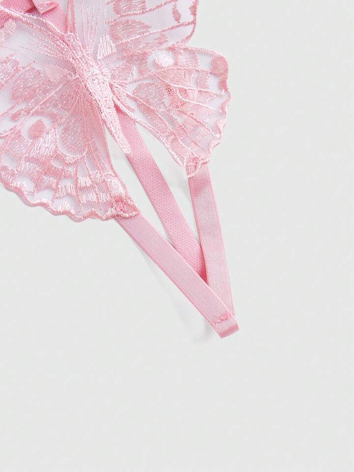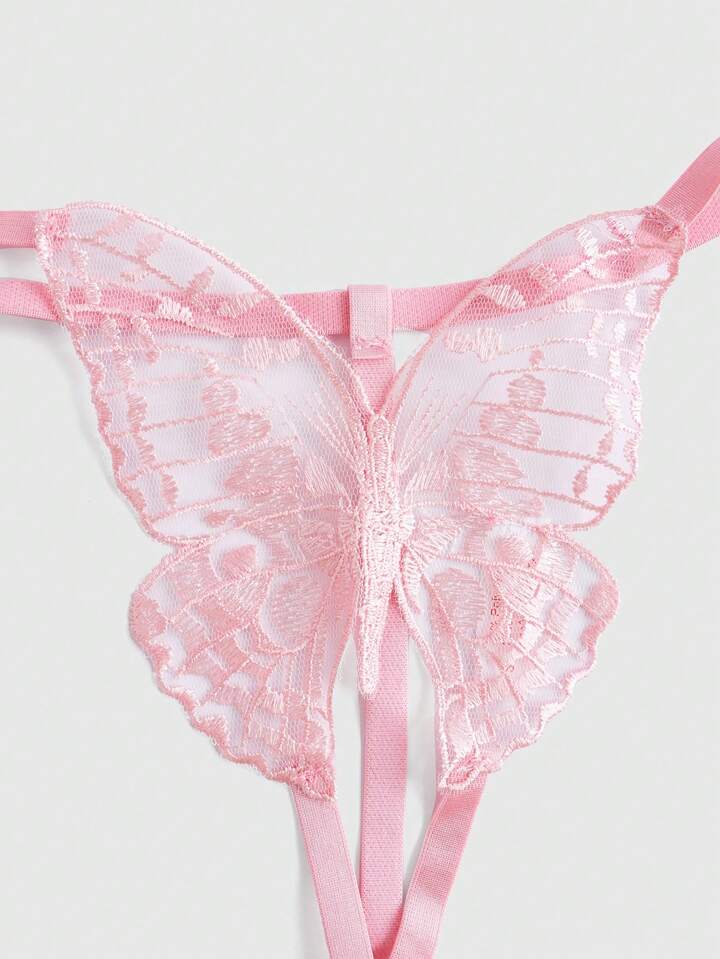 Goth Water Soluble Lace 3d Butterfly Crotchless Sexy Thong Panties Lingerie