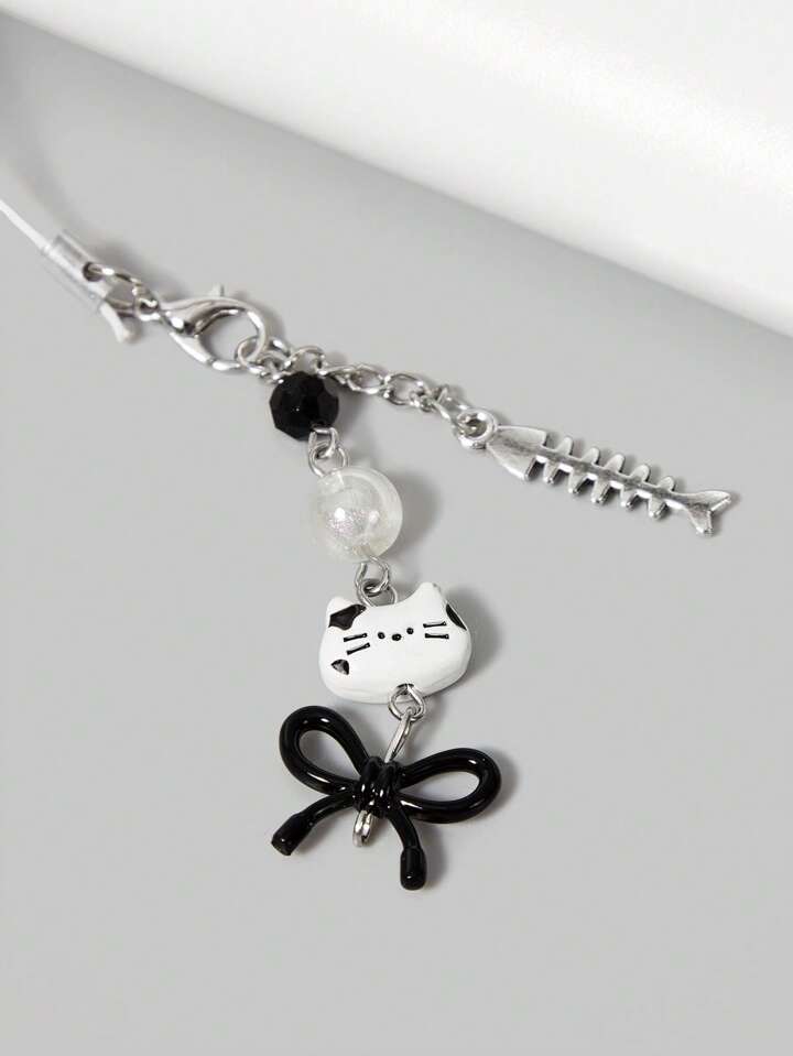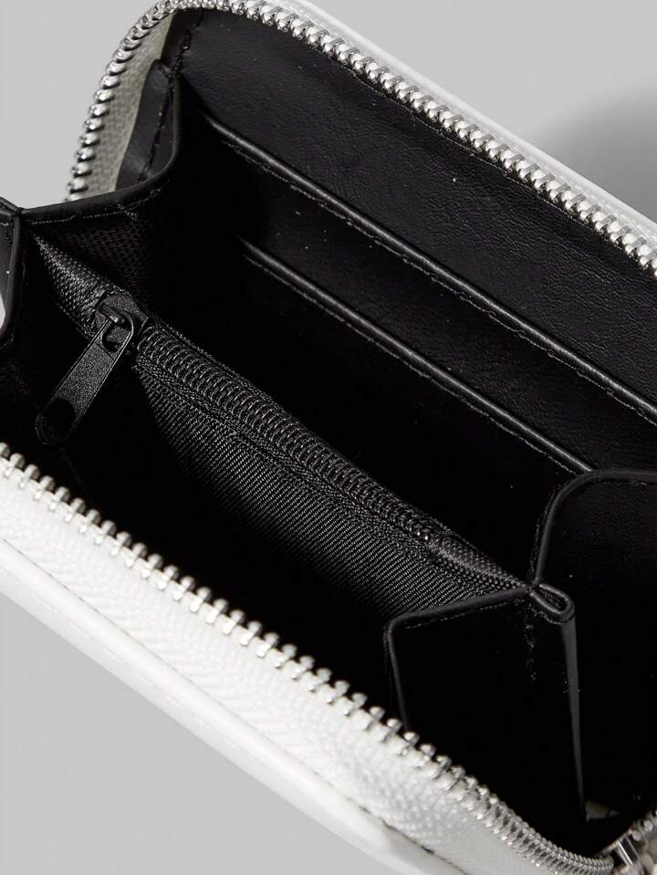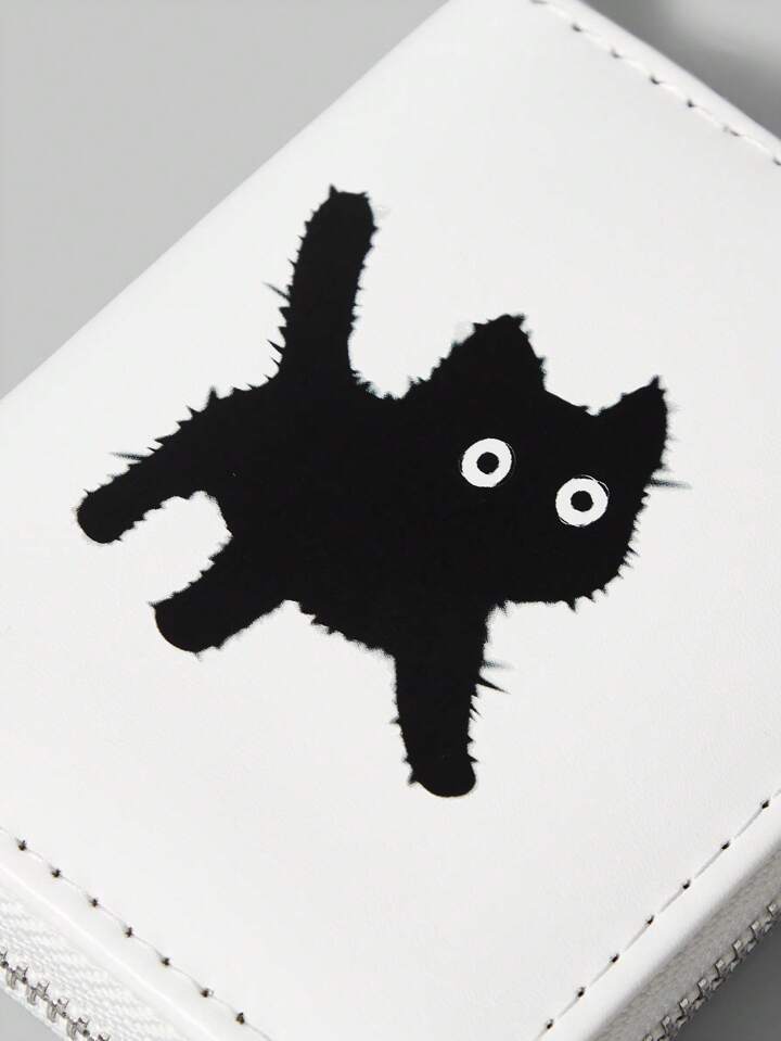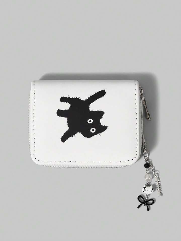 Goth White & Black Cat With Bowknot Pendant Short Wallet, Cute Multifunctional Card Slots Purse